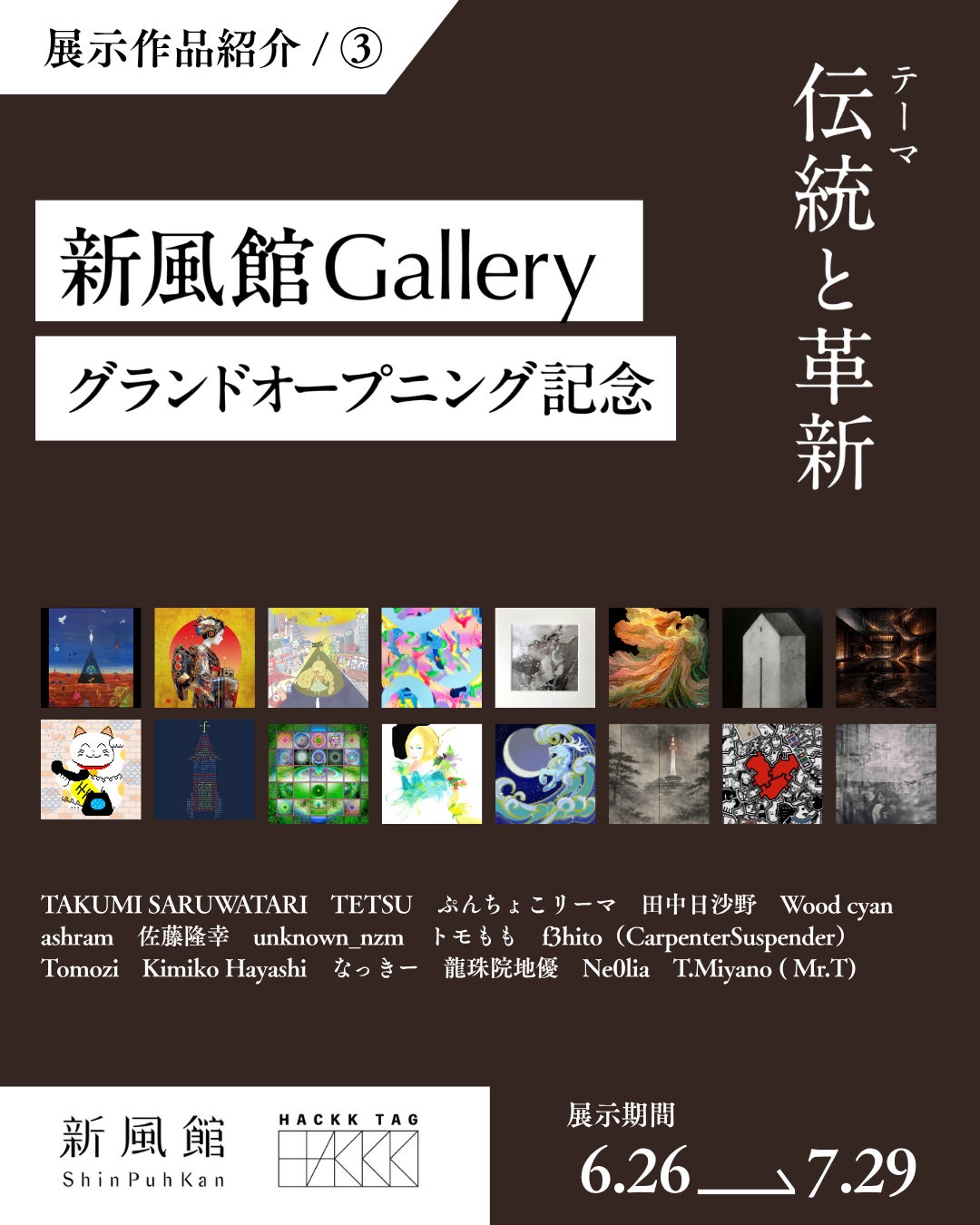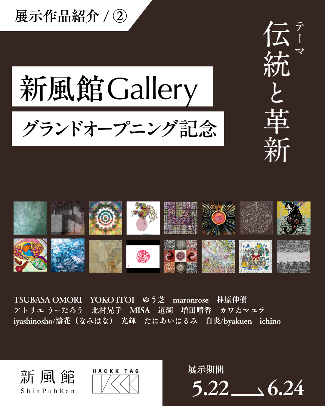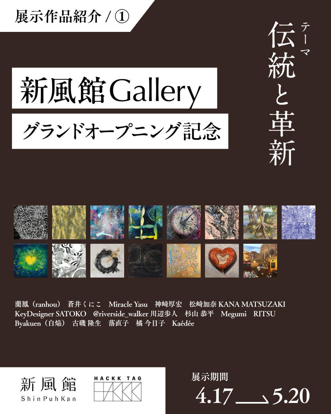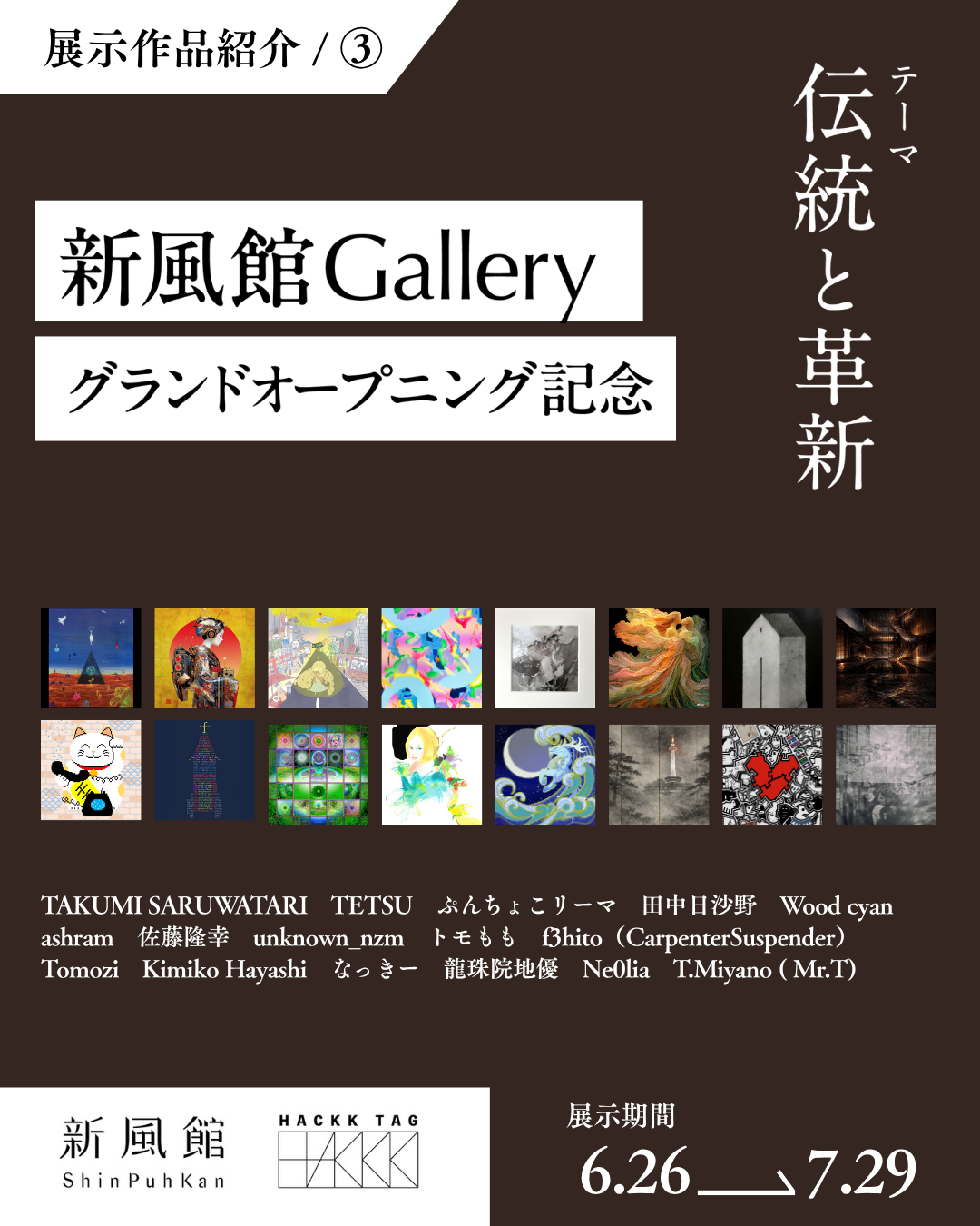 GRAND OPENINGを記念して、「伝統と革新」をテーマとしたアートコンテストを実施し、47作品が入選、新風館賞1作品が決定しました。入選作品については第1期~第3期に分け、それぞれ15~16作品を新風館Galleryにおいてデジタル展示します。