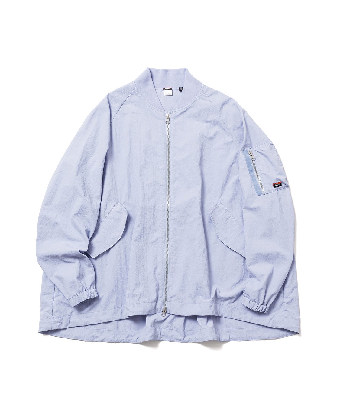 ナイロンタッサー素材を使用したウィメンズのジャケット。ミリタリーのボンバージャケットをベースにしつつ、裾に向かって広がるAラインシルエットでフェミニンな印象をプラスしました。裾のコードを絞ることで、コクーンシルエットにもアレンジ可能です。