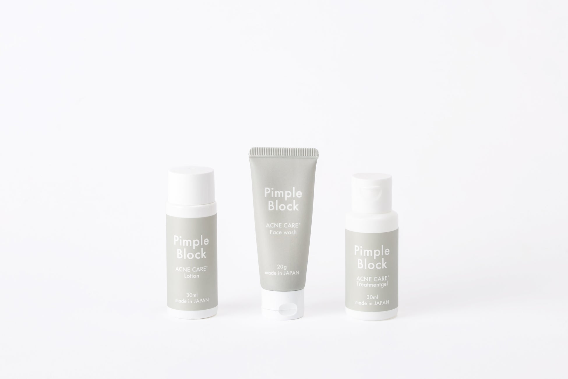 長年にわたり美顔器を研究してきた企業だからこそ、思春期にさしかかった時や、ストレスや乾燥などの毛穴トラブルで悩む方からのお声を頂くことも多く、「肌トラブルの悩みが気になる方でも、心地よく使える化粧品はないだろうか」という思いから「Pimple Block」は生まれました。ブランド名であるPimple(ニキビ・吹き出物) 、Block(防ぐ)の名の通り、ニキビが気になる肌を穏やかにサポートし、ニキビの出来にくい肌へと導きます。