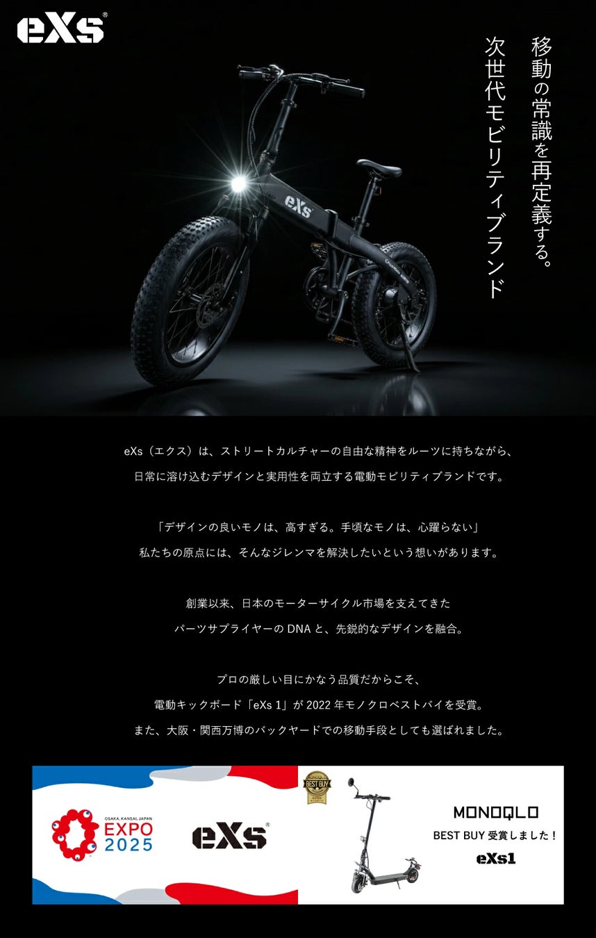 次世代モビリティブランド「eXs(エクス)」、日本最大級のスポーツサイクルフェスティバル「サイクルモード東京2026」に初出展!