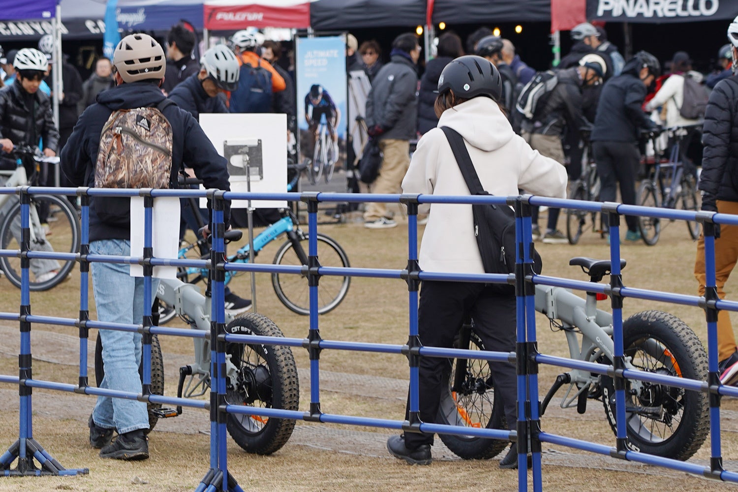 20インチの極太ファットタイヤが目を引く「eXs Street」は、海の森公園の広大な試乗コースに登場。そのタフな見た目からは想像もつかない軽快な取り回しと、パワフルなアシスト性能を、開放感あふれるロケーションで存分に楽しめます。