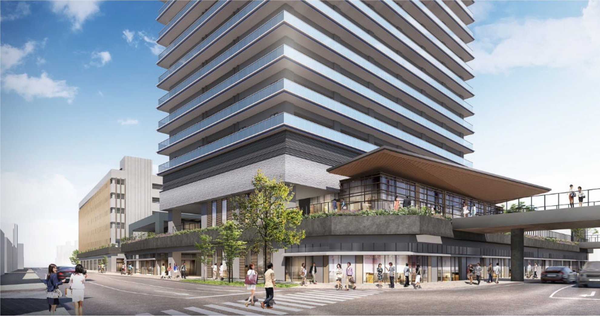 当事業は、幹線道路と鉄道が近接する富士市の主要な交通結節点となる富士駅北口において、「繋がり」「賑わい」「安らぎ」をコンセプトに、防災力や環境性能、将来の可変性などを備えた住宅と、駅前の利便性・回遊性向上につながる商業・公益施設の複合施設を計画しています。