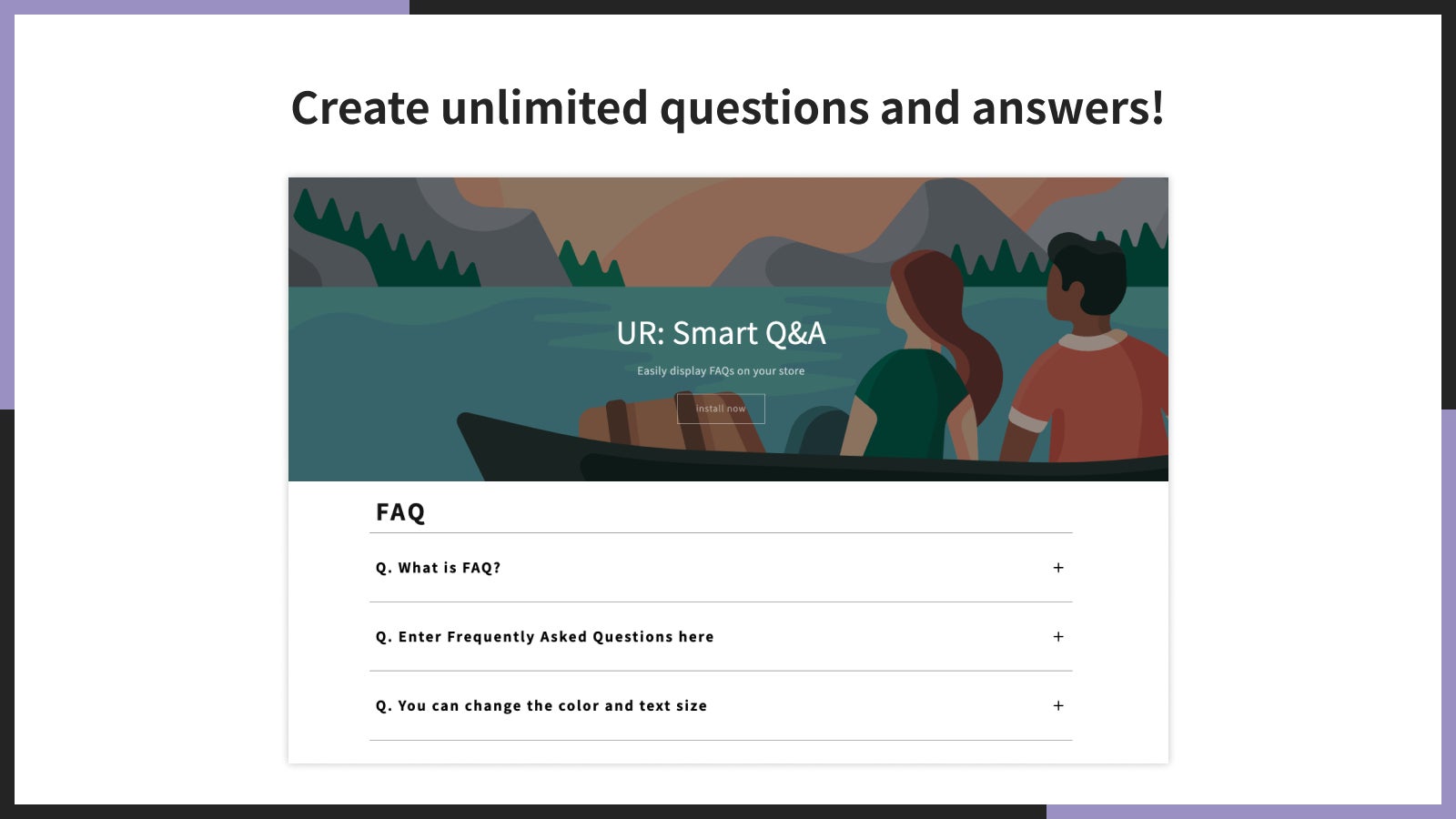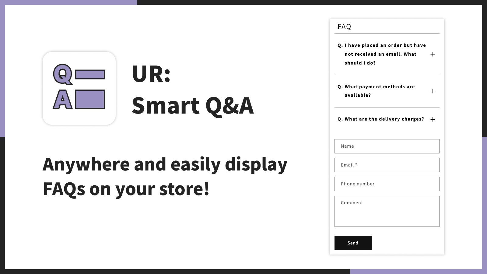 「UR: Smart Q&A|Anywhere FAQs」は、アコーディオン形式でよくある質問をストアに追加できます。