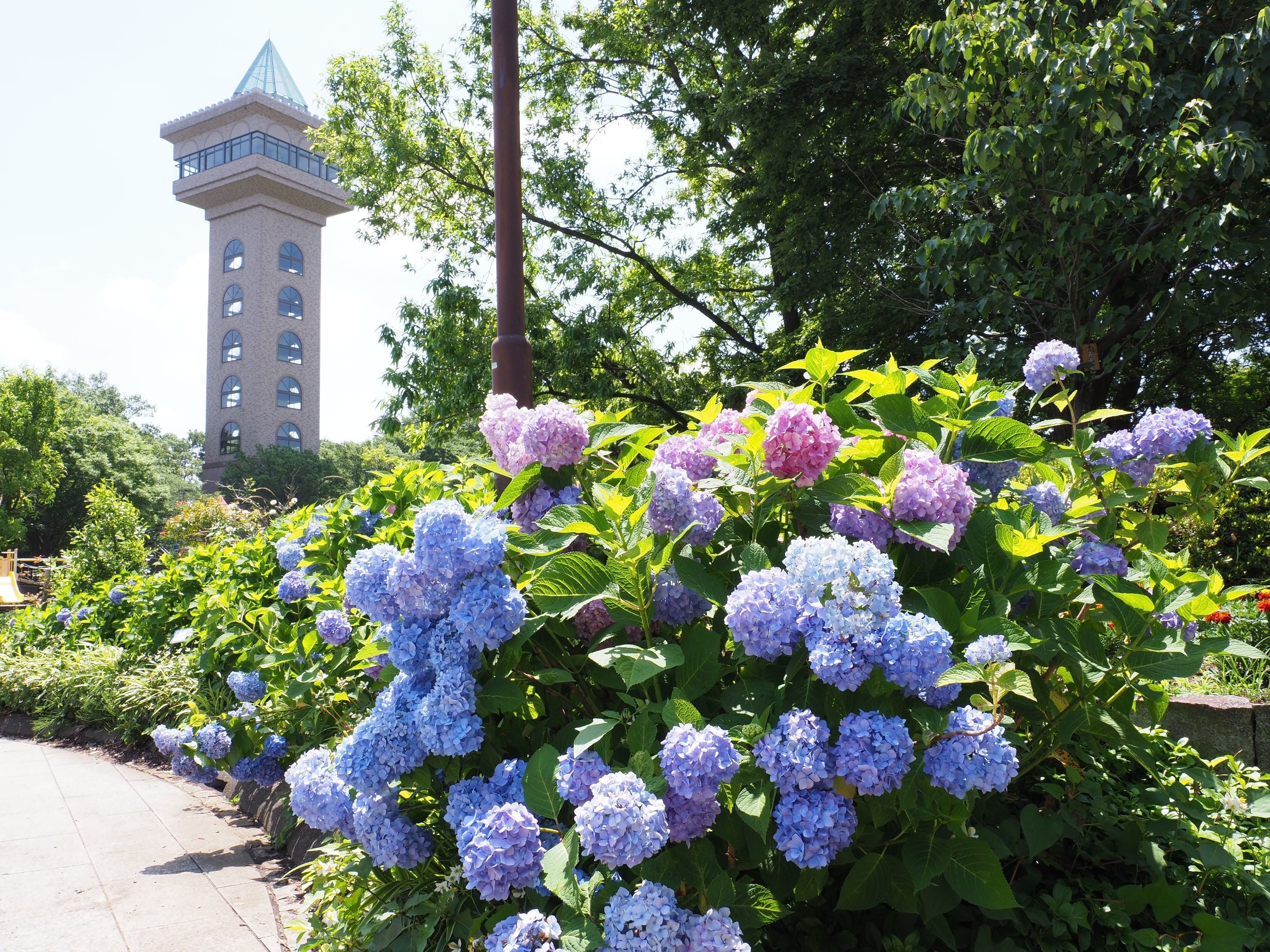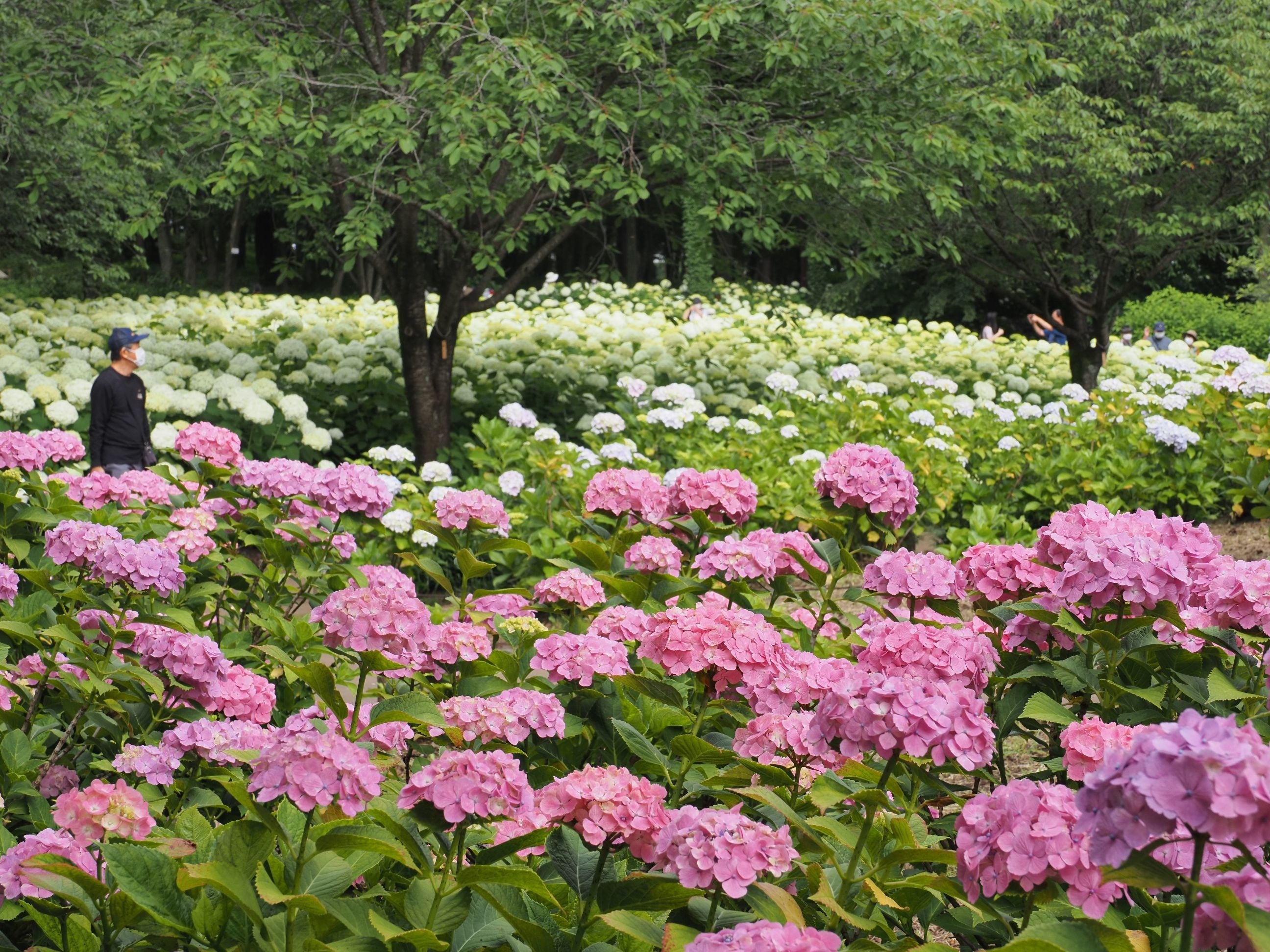 公園には「アジサイ園」があり、この時期は多くの人でにぎわっています。