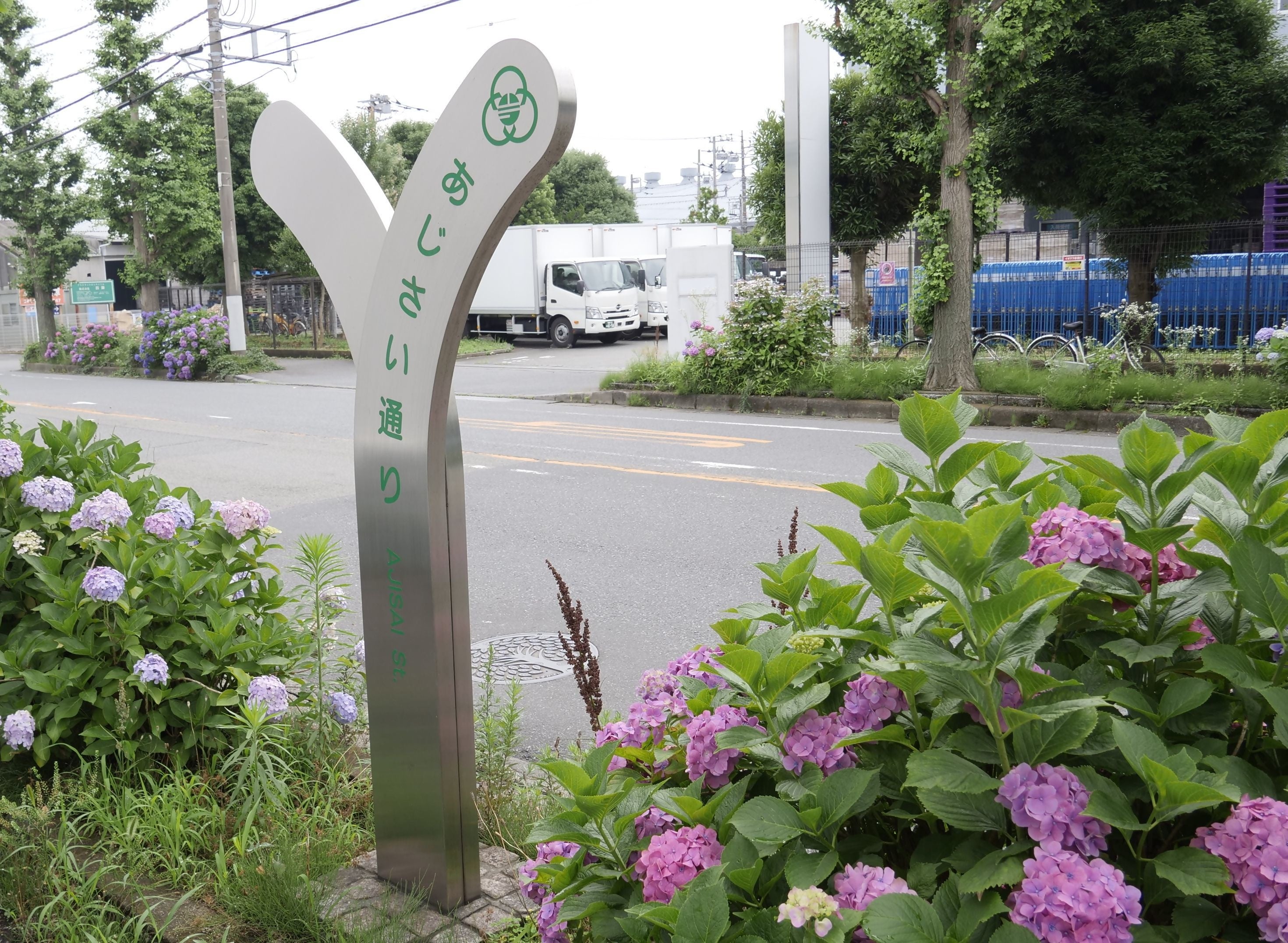 公園以外では、平成6年に市民の皆様から愛称を募集して名付けられた「あじさい通り」(中央区清新7丁目交差点~上中の原団地前)に約2kmにわたってアジサイが植えられているなど、市内の様々な場所でアジサイを見ることができます。