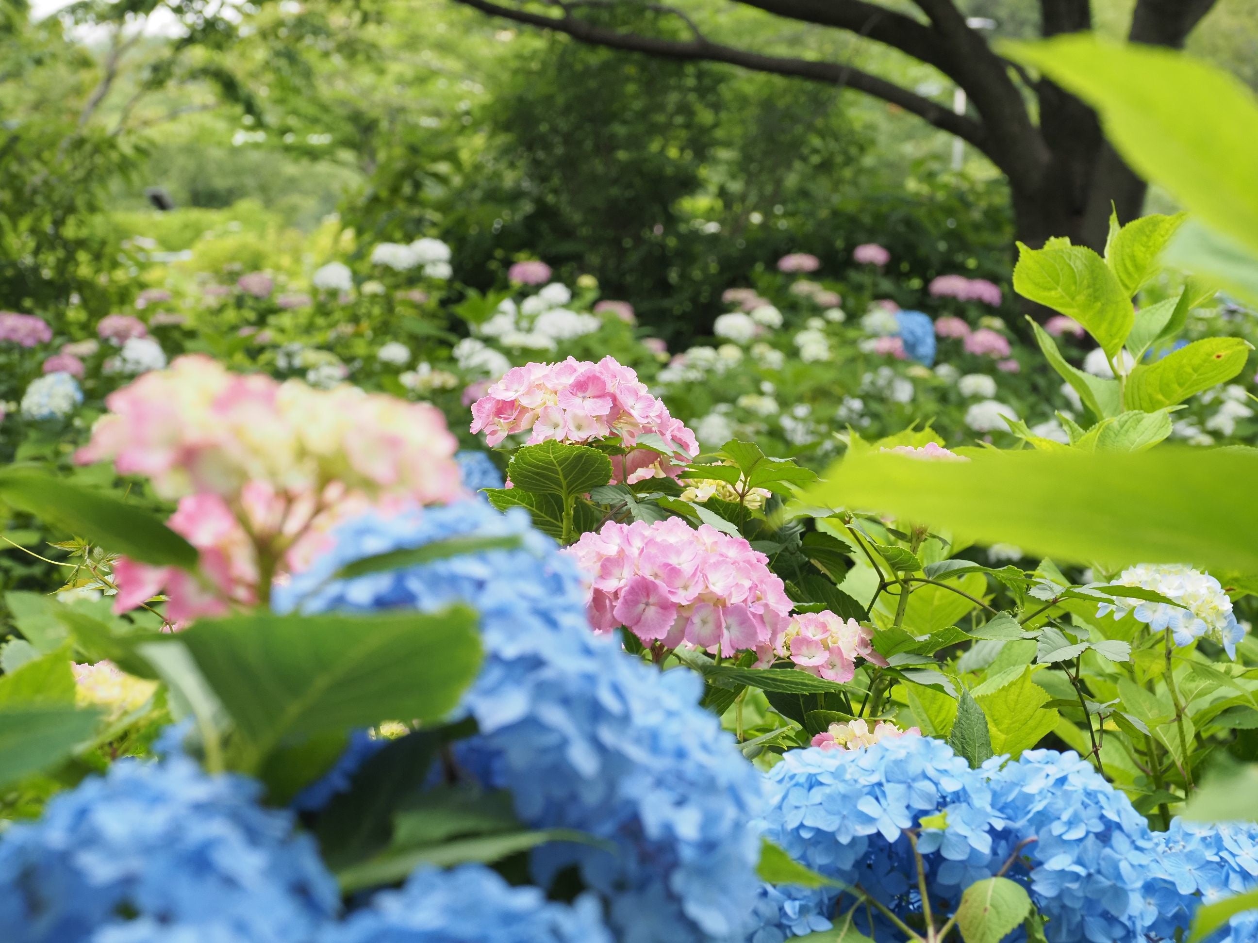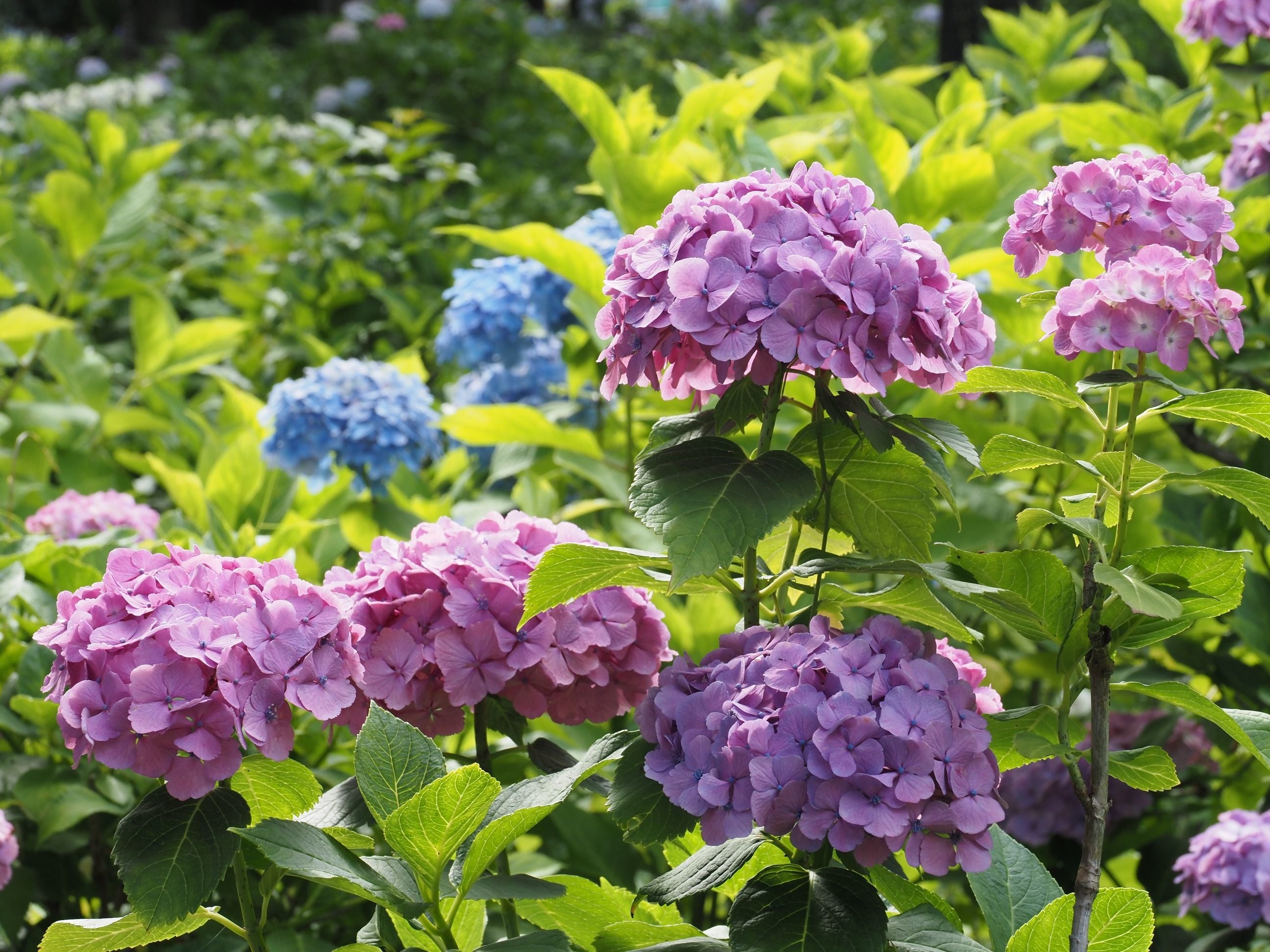 園内には約200種類10000株のアジサイが植えられており、特にアナベルが一番の見どころです。ほかには西洋アジサイ、ガクアジサイ、山アジサイなどを楽しむことができます。