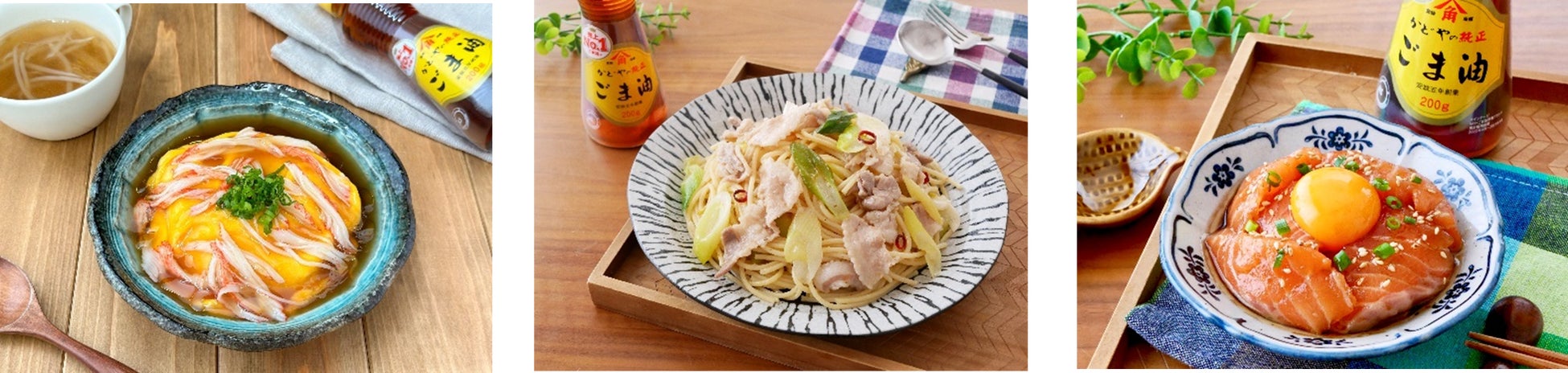 3名による愉快なトークとかどやの純正ごま油を使ったタイパ抜群、簡単ですぐに作りたくなる「おすすめレシピ」を配信にて紹介いただきました。