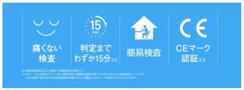 検査時間は15分程度で簡単です。(検査実施後30分以上経過した検査結果は無効です)