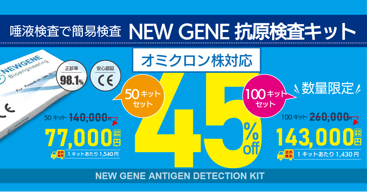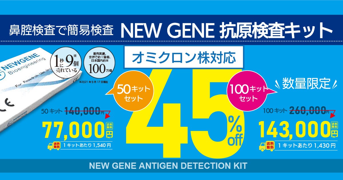 【45%OFF 研究用NEW GENE抗原検査キット大型割引】ご好評につきキャンペーン延長|100セット分追加