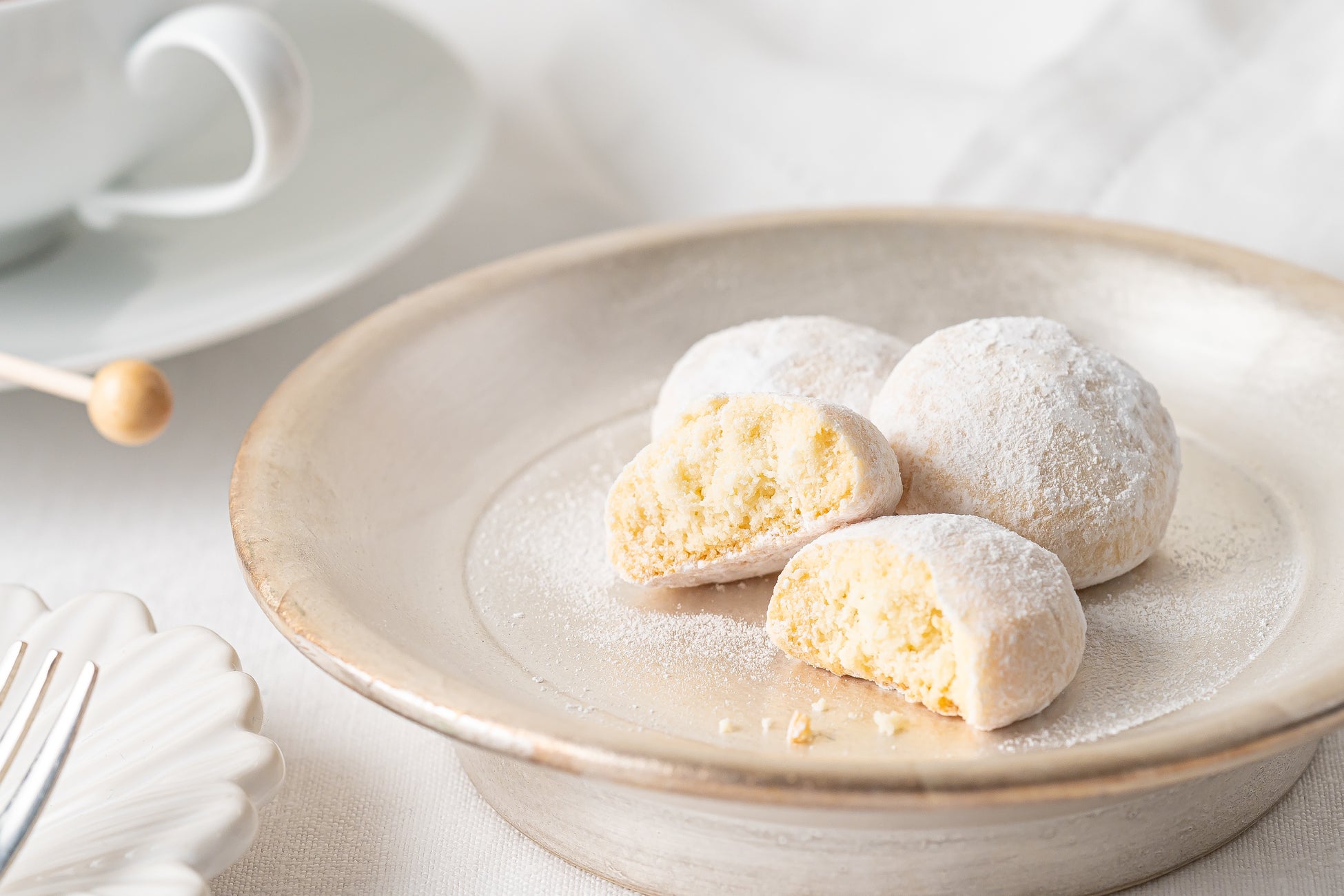 本商品は、「スノーボールクッキー」と呼ばれる種類のクッキーです。スノーボールクッキーの特徴は、噛むと簡単に崩れる軽い食感があります。卵を使わずに小麦粉とバター、糖類から作ることで軽い食感を生み出しています。ポルポローネやブールドネージュといった“雪玉”を意味する名前で、昨今、さまざまなメーカーから続々と発売されるなど、日本でも人気を伸ばしているクッキーです。