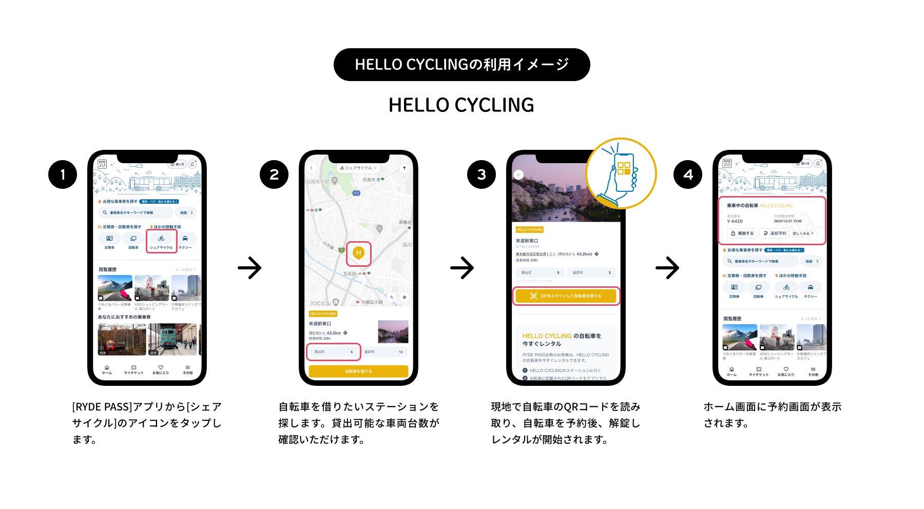 RYDE PASSアプリ上で、「ドコモ・バイクシェア」と「HELLO CYCLING」が利用可能に