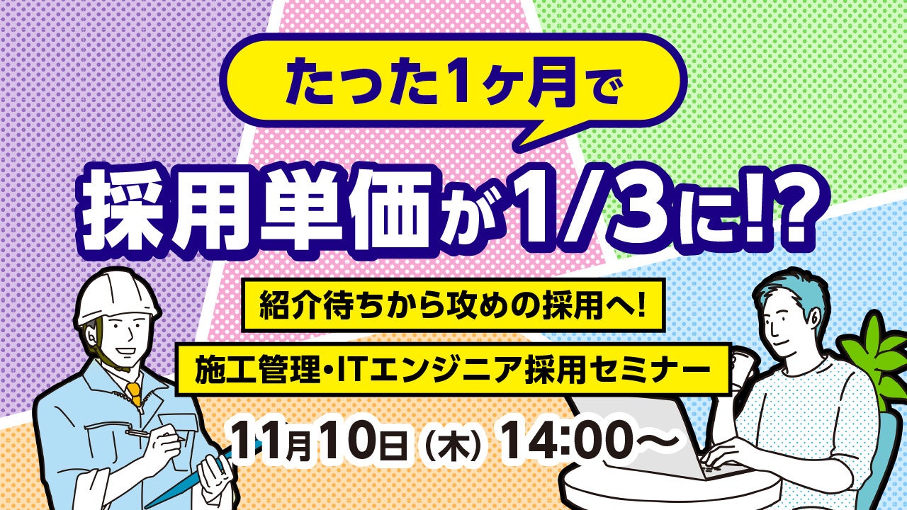 たった1ヶ月で採用単価が1/3に!? 紹介待ちから攻めの採用へ!施工管理・ITエンジニア採用セミナー