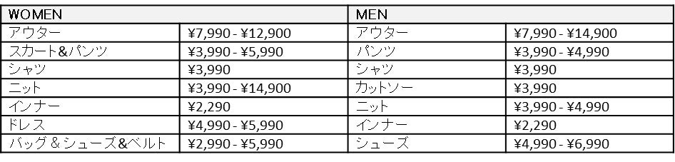 商品ラインナップ: ウィメンズ22アイテム、メンズ15アイテム、アクセサリー8アイテム