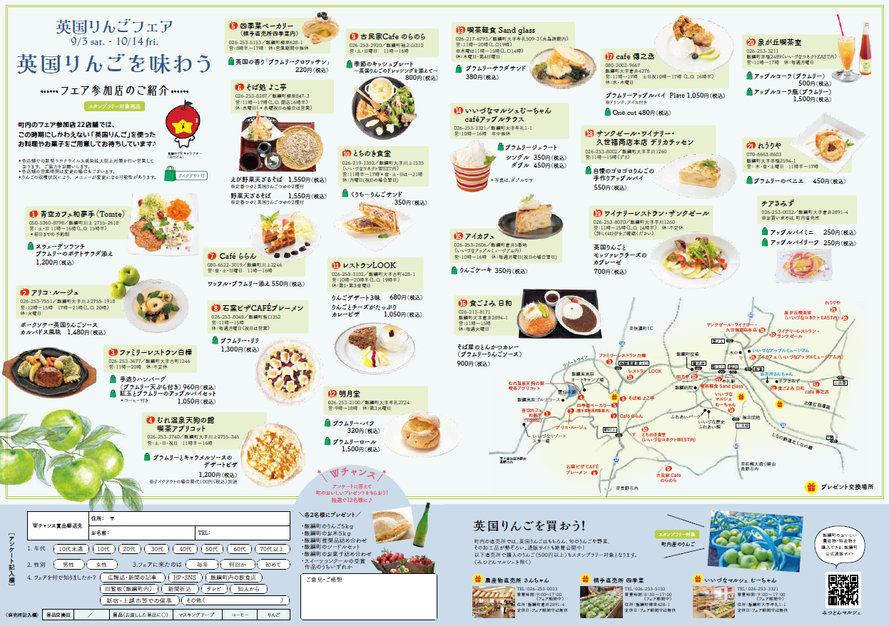 9月3日(土)から10月14日(金)まで、飯綱町のフェア参加22店舗で英国りんごを使ったメニューが提供されます。