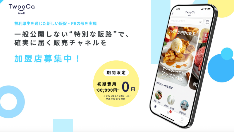 TwooCa Mallでは、モールの拡充に伴い加盟店を募集しています。