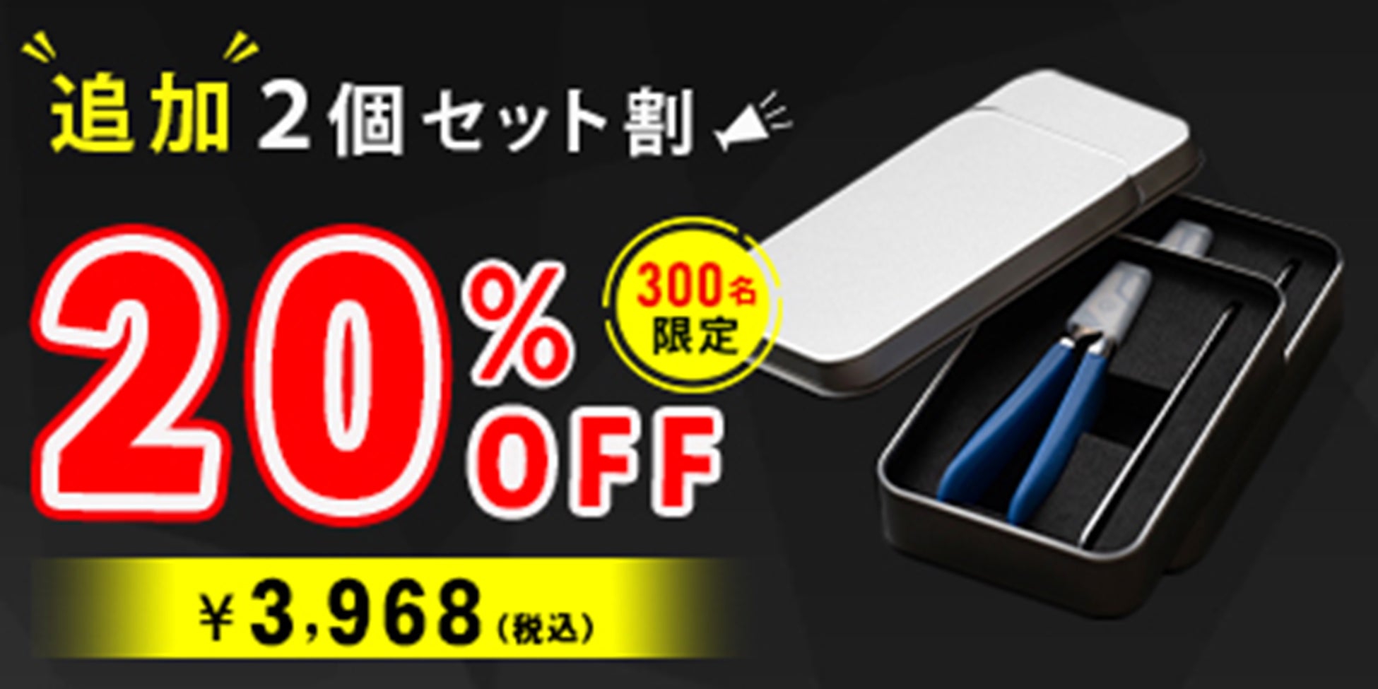 株式会社immerse japanは「脱・先延ばし癖」をコンセプトにした爪切りシルキークリッパーを、クラウドファンディングCAMPFIRE(https://camp-fire.jp/projects/777354)にて先行販売を行い、支援者数300人を突破しました。この成功を記念し、売り切れとなっていた2個セットのリターンを追加いたします。