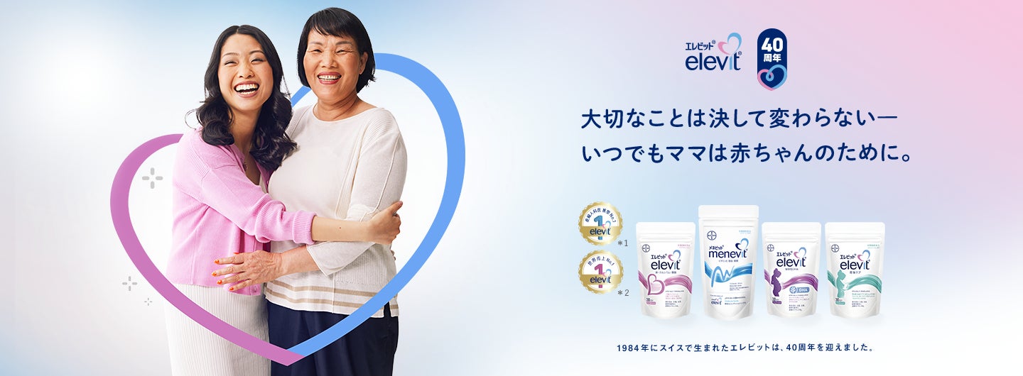 1984年にスイスで販売開始したエレビット®は今年で40年目となり、さらに日本の販売開始から本日で8周年を迎えています。現在、79の国と地域で選ばれているエレビット®は、これまで海外・国内での臨床試験を積み重ね研究されており、世界各国で40年間にわたり世代を超えてママたちをサポートしてきました。本キャンペーンでは、エレビット®40周年スペシャルサイト(https://www.elevit.jp/40years/)を本日公開し、エレビットの実績と歴史、40周年スペシャルムービー、産婦人科医からのメッセージなどを含むスペシャルコンテンツの公開やプレゼントキャンペーンを展開します。またエレビット®公式YouTubeチャンネル(https://www.youtube.com/@user-lj6px2fj7f/)、SNS(X、Instagram)でもご紹介しています。妊活・妊娠・産後の女性やそのご家族に寄り添うコンテンツとなっていますので、ぜひご覧ください。