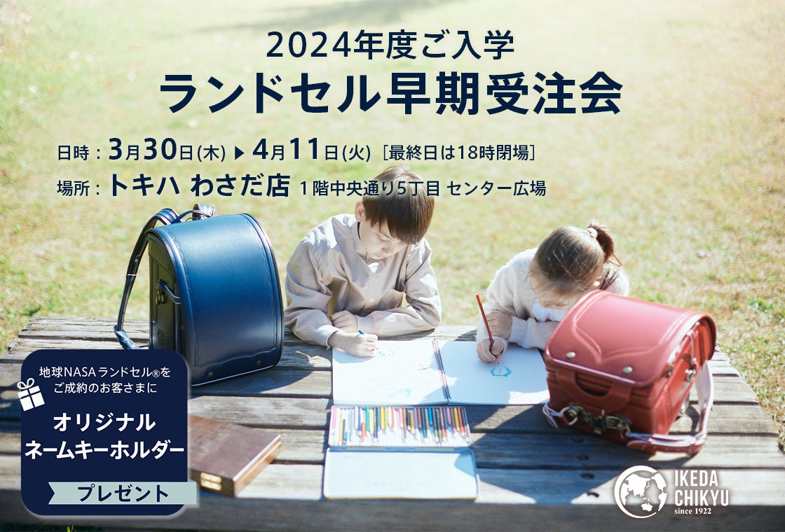 ランドセルの企画・販売を行う池田地球株式会社(本店:東京都港区:代表取締役 村尾光一)は、大分・トキハわさだ店で3/30(木)~4/11(火) に開催される「2024年度ご入学 ランドセル早期受注会」に参加いたします。