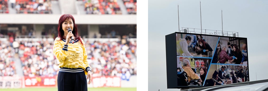 令和6年能登半島地震 復興応援チャリティーマッチのハーフタイムに「知って、肝炎プロジェクト」特別プログラムを実施。「ご自身の健康を考えて、定期的な健康診断や病気の検査を受けていただきたいです。」