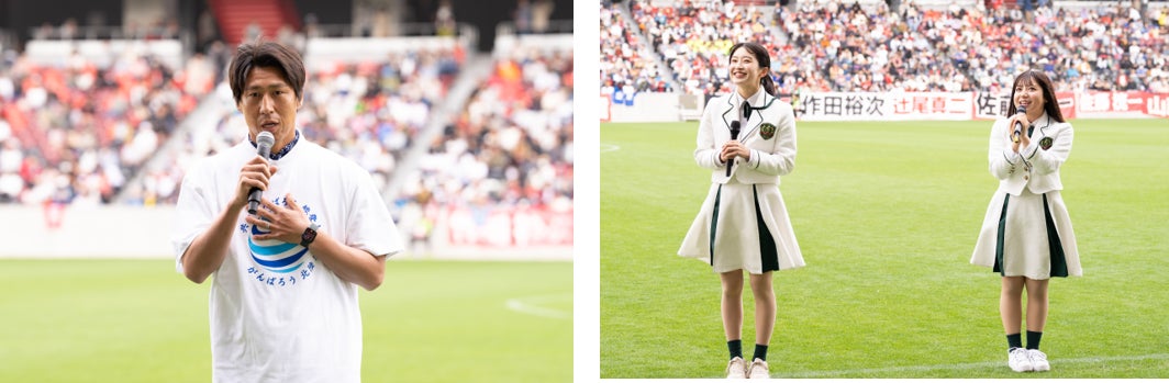 「パフォーマンスでみなさんに元気を届けるためには、自分自身も健康でないといけないと思っています。そして、みなさんに私たちにしか届けられない音楽をお届けしていきたいと思っています。」続けて有松氏は「私たち地元密着型のアイドルグループとして大好きなサッカーを応援し続けるのはもちろん、子供たちの夢や希望を叶えるためには私たちが健康でないといけないので、常日頃から健康でいることを気にかけながら元気に過ごしていきたいと思います。」と語りました。