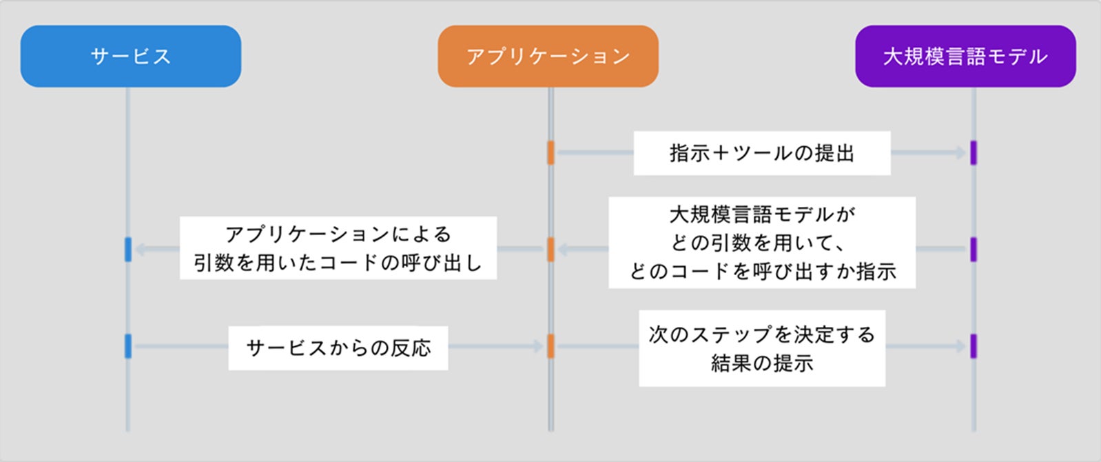 例えば、「11 月1 日 のニューヨークからサンフランシスコに飛ぶ航空券を 500 ドル以内で予約したい」場合、LLM と関数呼び出しを活用することで、①「出発地」や、「目的地」、「出発時間日」や「予算費用」という複数の要素に分解して、② その条件にあったフライトを検索、③ 検索結果と選択肢を提示、④ 予約用の URL を特定、⑤航空券を購入、というそれぞれの手順に対応するエージェントのセットを組み立ててこの要求に応えることができます。