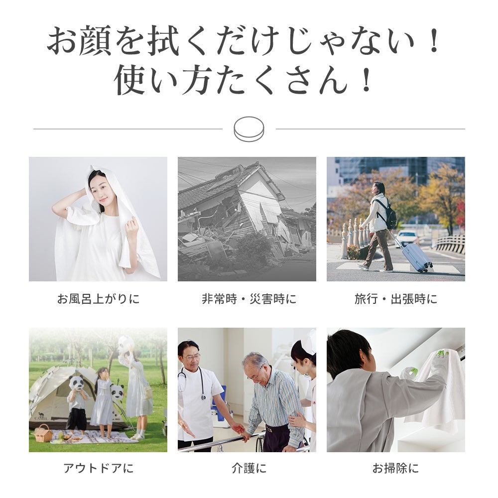 持ち運びしやすい圧縮タイプ、吸水性バツグン!スペースを取らずに常備出来るので、非常に使い勝手の良い、便利なタオルです。