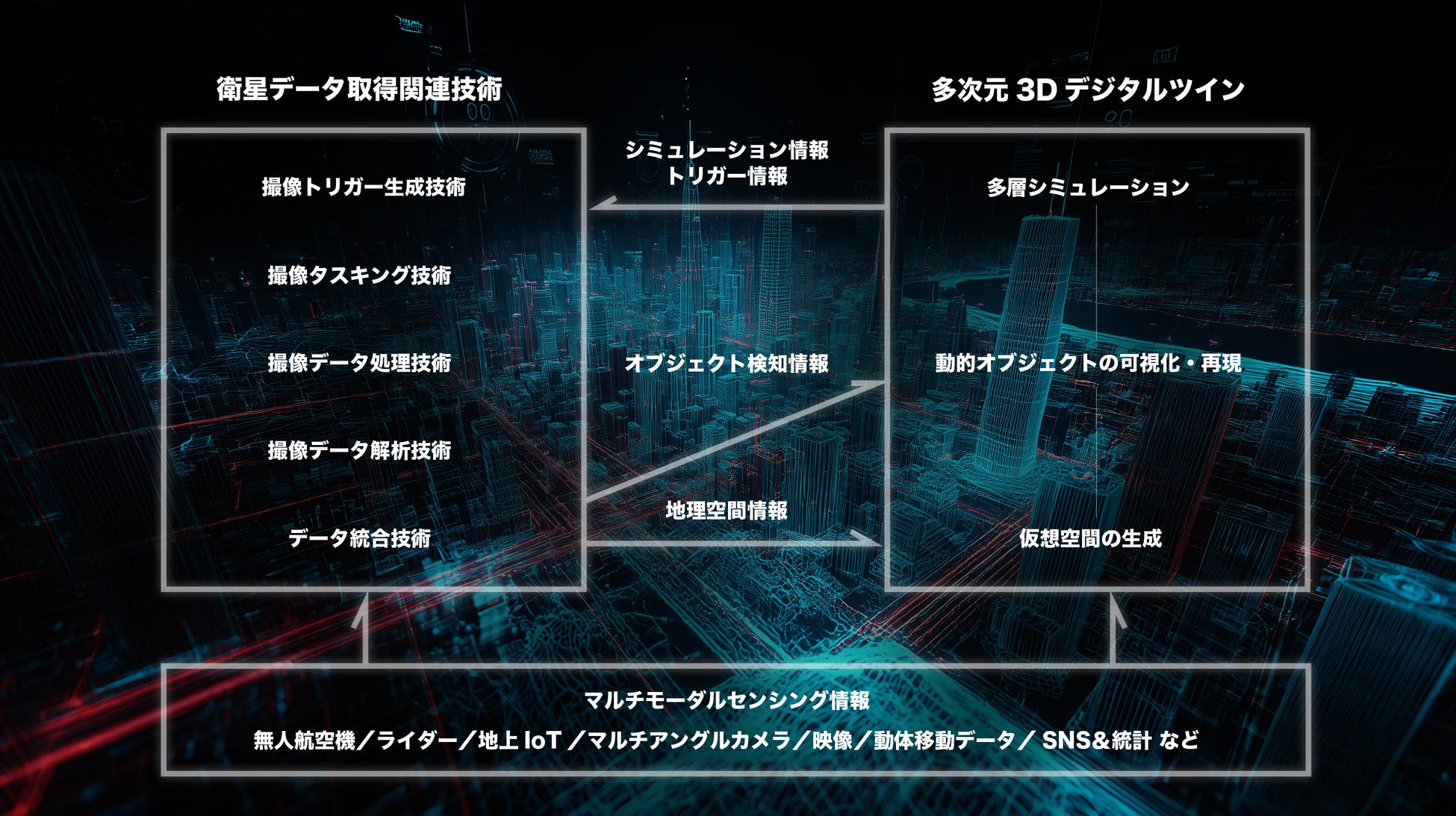 株式会社スペースデータ(本社:東京都港区、代表取締役社長:佐藤航陽、以下「スペースデータ」)、三菱電機株式会社(本社:東京都千代田区、代表取締役社長:漆間啓、以下「三菱電機」)、衛星データサービス企画株式会社(本社:東京都千代田区、代表取締役社長:粂野和孝、以下「SDS」)は本日、データ解析AIやスマートタスキング技術に加え、ドローン・地上センサ・統計等のマルチモーダルデータを、3Dデジタルツインで統合し、広域業務の判断を支援する3D状況可視化・シミュレーション基盤の実用化に関わる業務提携を行い、検討を開始しました。初期PoCは防災等レジリエンス領域から着手しつつ、インフラ保全、気候適応、モビリティ、保険/金融などの分野へ順次事業化を図ります。