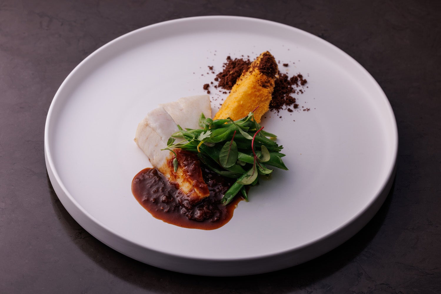 この秋のテーマは、「スモーキーな香り」。「シェフとは調香師である」というポリシーを持ち、料理の中でも特に香りにこだわる古賀らしく、炭火や燻製のテクニックを巧みに使用。京都産の旬の食材と400年以上の歴史ある京野菜農家「樋口農園」の野菜をふんだんに取り入れ、「食欲の秋」にふさわしいコースに仕上げました。