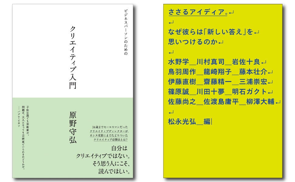 本イベントでは、『ささるアイディア。』の編者である松永光弘氏と、『ビジネスパーソンのためのクリエイティブ入門』の著者、原野守弘氏が、いまの時代に求められているアイディアの条件について語ります。