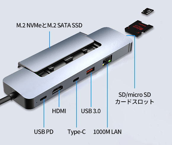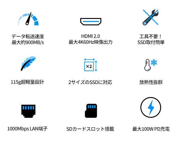 SSD直挿しケース×8in1多機能拡張ハブ「V01」登場。【データ転送速度最大約900M/s・超軽量約115g・コンパクト】