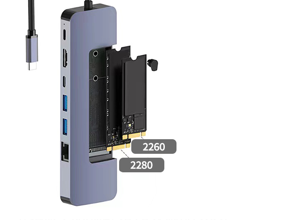 「V01」はSSDケースの機能を搭載した、PC容量・ポート不足を解決し、様々なシーンで活躍できる8 in 1多機能高速USB Type-C拡張ハブです。