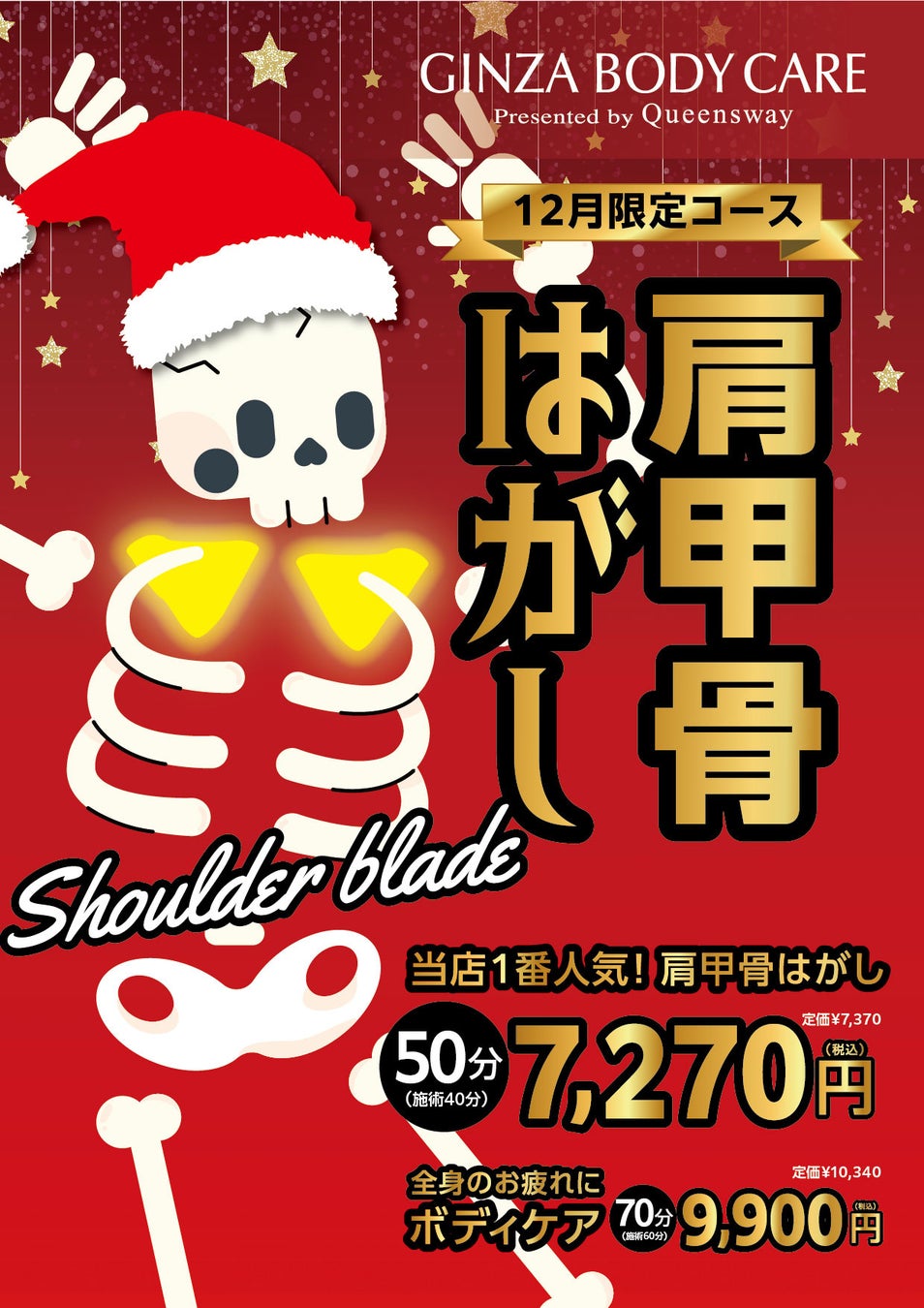 【肩甲骨を剥がして一年の疲れを落とす!】ボディケア&パーソナルトレーニング専門店のギンザボディケアが12 月限定のお得な施術コースを発表!