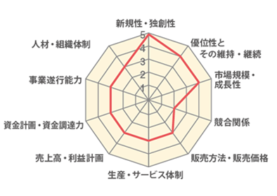 企業の技術力や経営力を、全10項目で各5段階評価し、自社の強みや弱みといった現状認識を深めることができます。(技術・経営力評価報告書の発行実績は10年間で累計約440件です。)