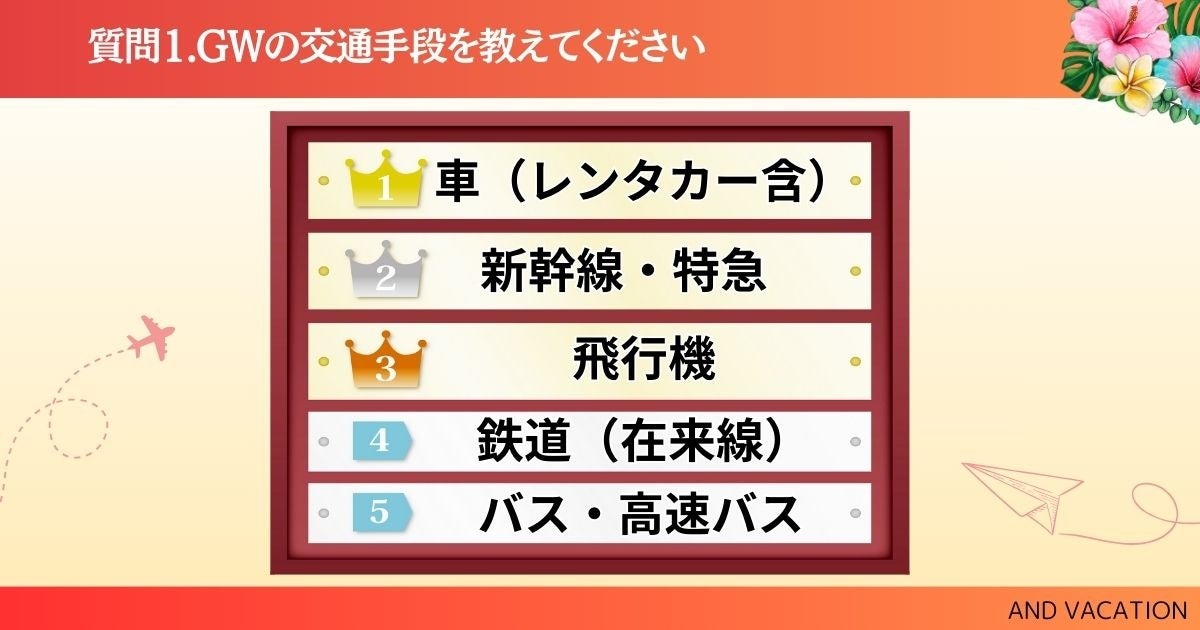 そこで、GW旅行の交通手段をアンケートで聞き取り調査をしました。ぜひ、チェックしてみてください!