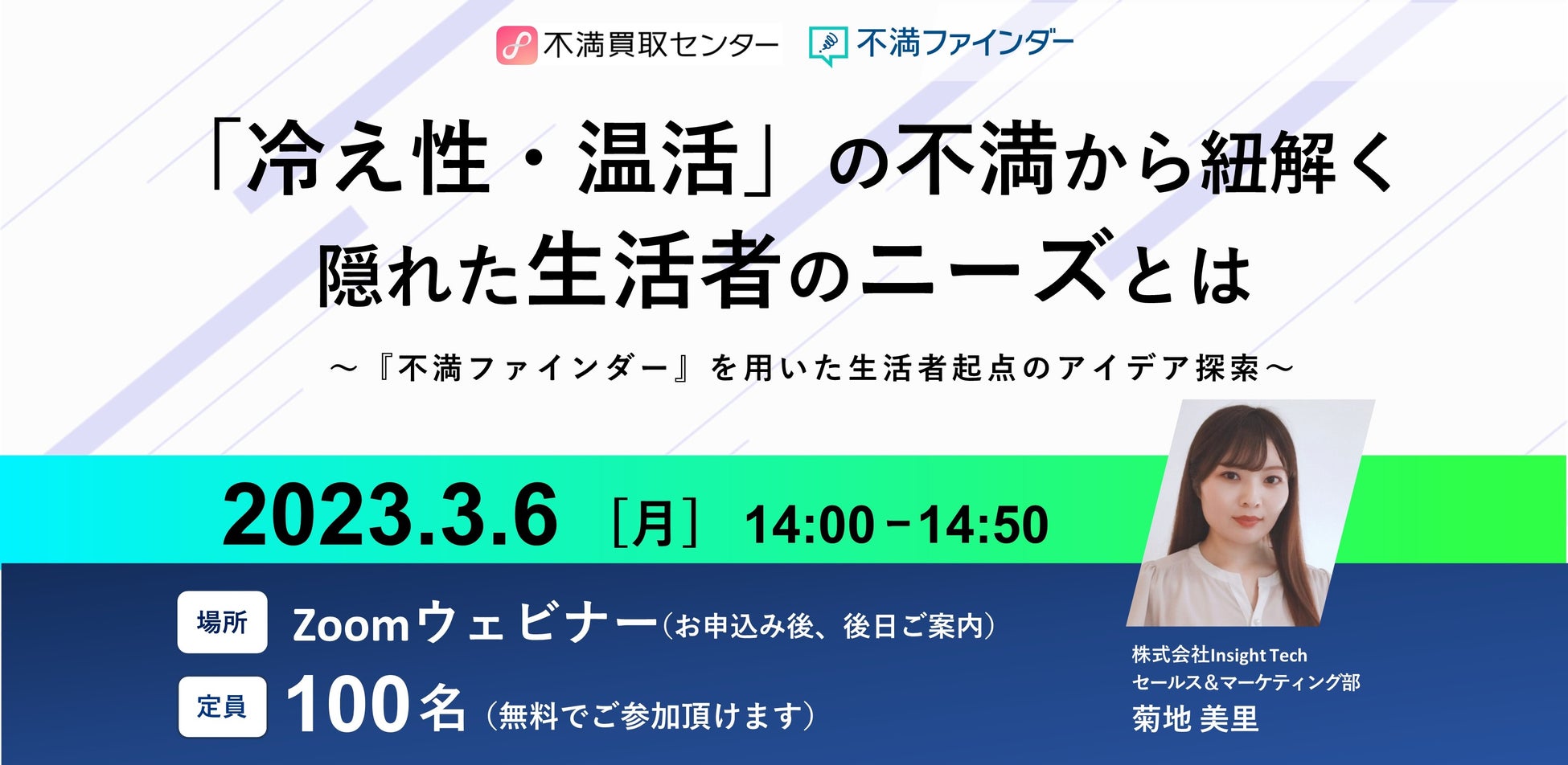 株式会社 Insight Tech(東京都新宿区、代表:伊藤友博、以下 Insight Tech)は、同社が運営する『不満買取センター』に寄せられた「冷え性・温活」にまつわる不満を対象に、『不満ファインダー』で解析した結果を考察したWebセミナーを開催致します。