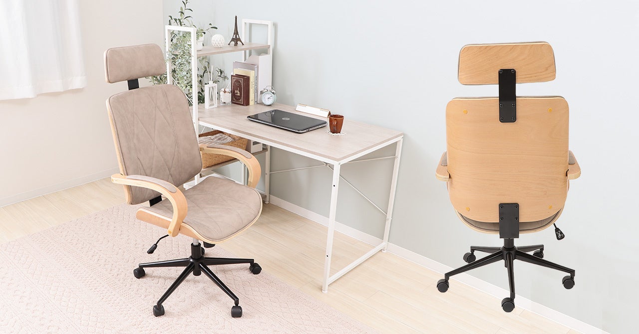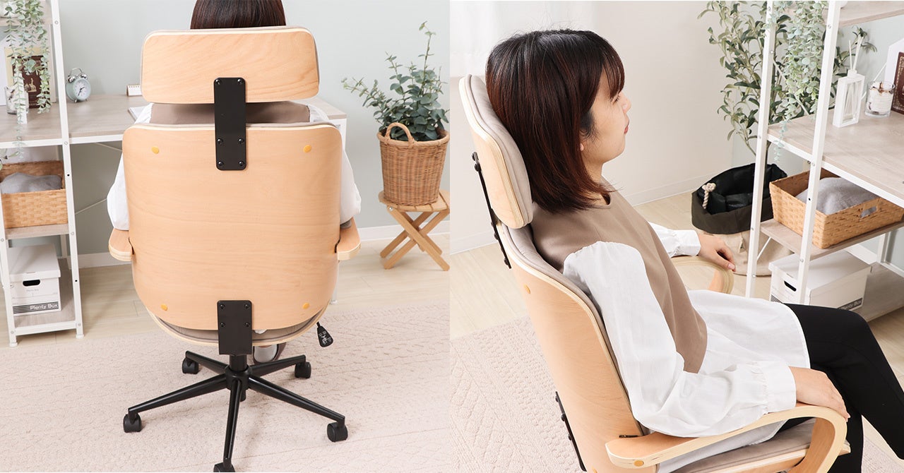家具の企画、製造、販売を行う株式会社ヤマソロ(本社:兵庫県小野市、代表取締役社長:山本 一郎)が運営するインテリアECショップ『ヤマソロ公式 A LA MODE(アラモード)』は、美しい木目の成形合板と合成皮革を組み合わせた、デザイン性のあるオフィスチェア -chaine-(シェンヌ)を発売します。頭部をあずけられるヘッドレストが付いたハイバックタイプとなっており、ゆったり、もたれ掛かって座ることができます。ハイバックでも圧迫感を感じないのはナチュラルな木目と優しいグレージュカラーの配色効果。また、この椅子には座ったままリフレッシュできるロッキング機能も追加され、身体のことを考えたチェアとなっています。オフィスチェア -chaine-(シェンヌ)は、ヤマソロオフィシャルストアにて予約発売しています。