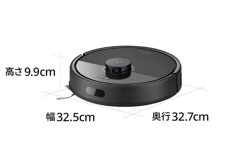 掃除機本体のサイズは、幅32.5×奥行32.7×高さ9.9cmと、既存品の「Q5 Pro+」と比較して直径約2.6cmコンパクトになりました。どんな部屋にもフィットし、置き場所にも困りません。