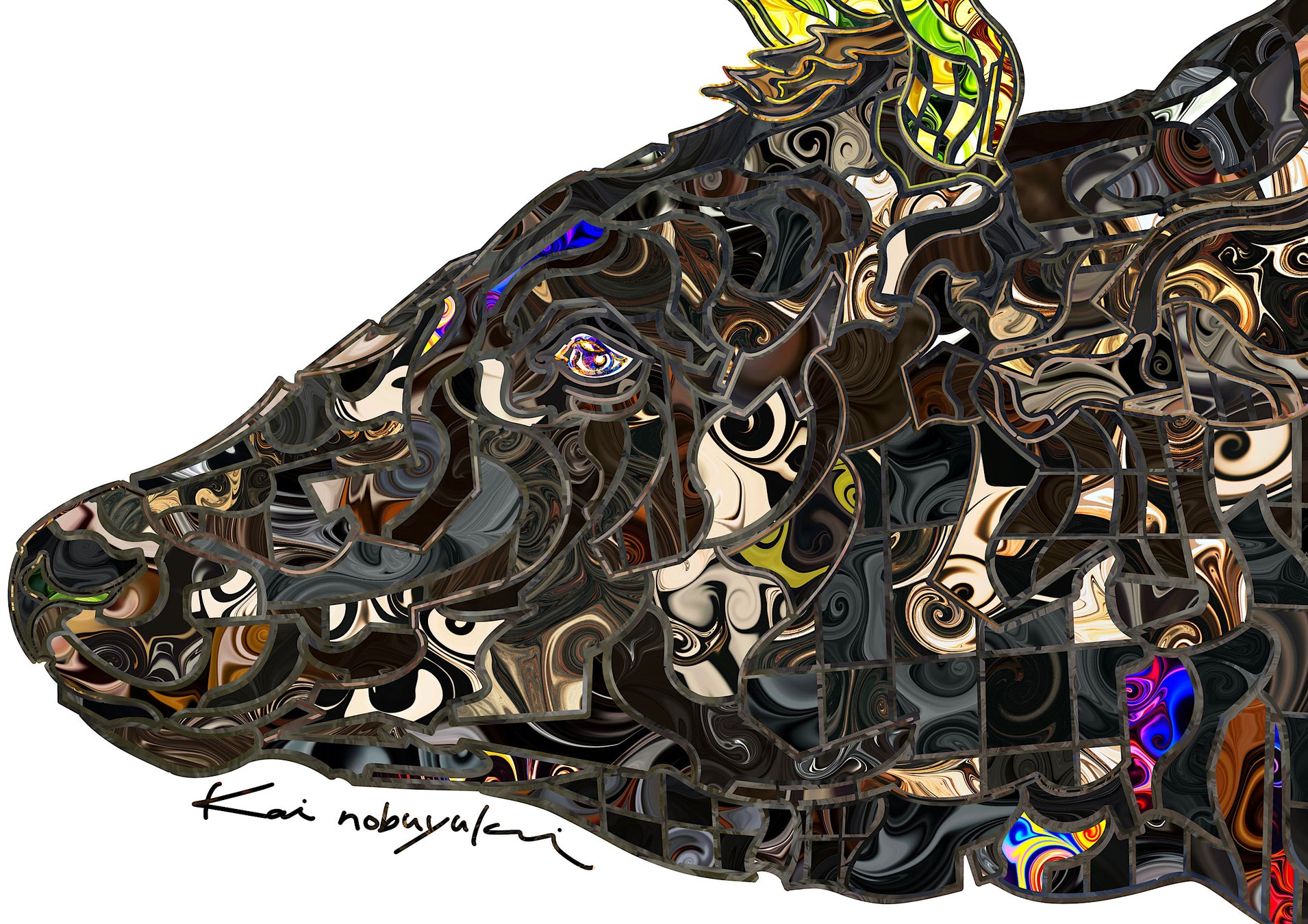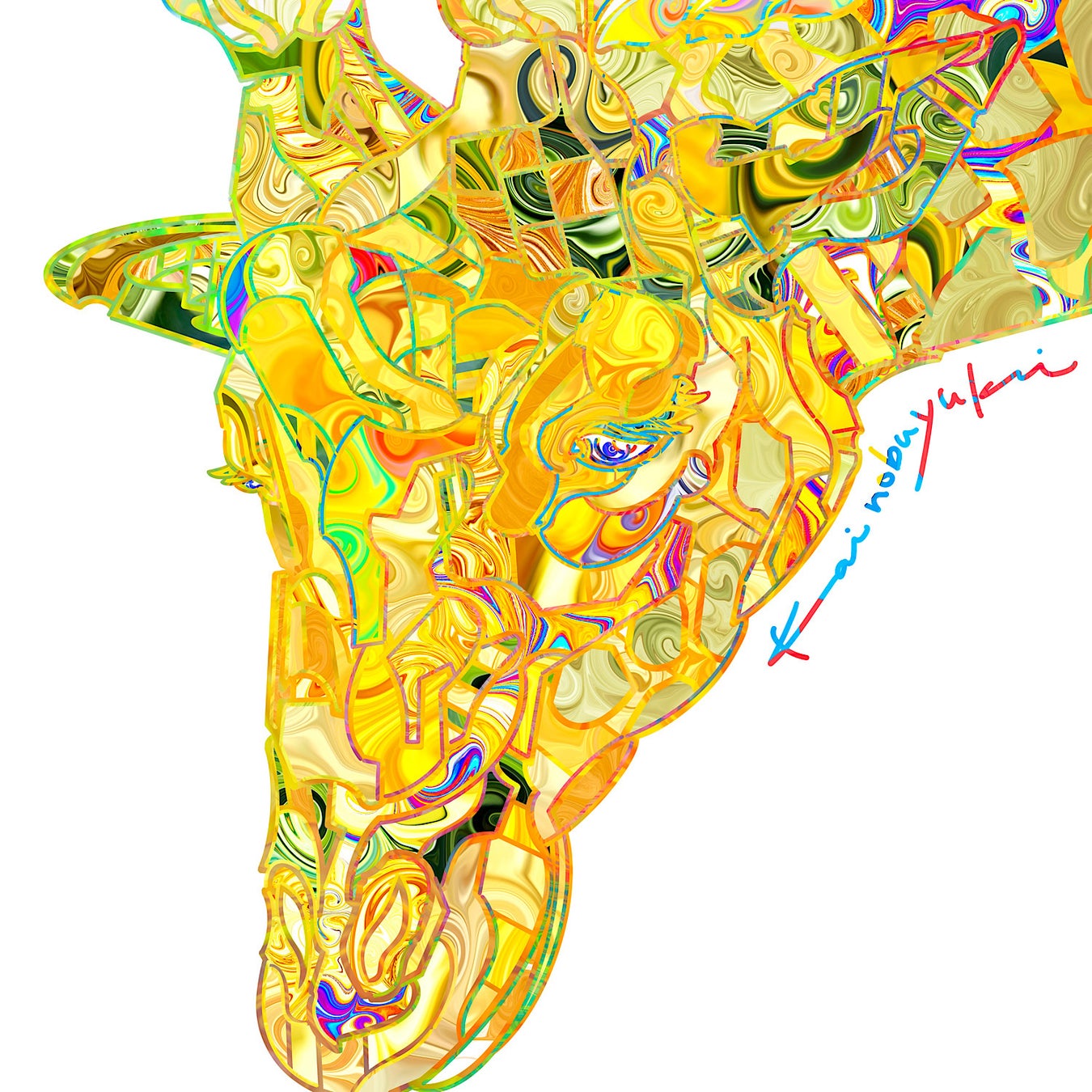 1982年福岡県生まれ、都内在住。活動開始当初は、木板に黒ペンのみでさまざまな動物を描いた作品作りをしていた。2020年から、デジタルを取り入れることで作品に「色」を加え、新しい作品像を開拓。色彩豊かなマーブルは、木板に描いていた頃の木目から着想を得たもの。無作為なラインから生まれる表現を大切にし、カラフルなマーブル模様で面を彩ることで作品に生命力と躍動感を与える。
