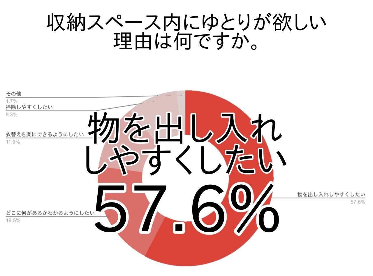 出し入れがしやすく、物の置き場所が分かりやすい「ゆとりある収納」を実現し、日々の使い勝手を向上したいと考えている方が非常に多いことが分かりました。