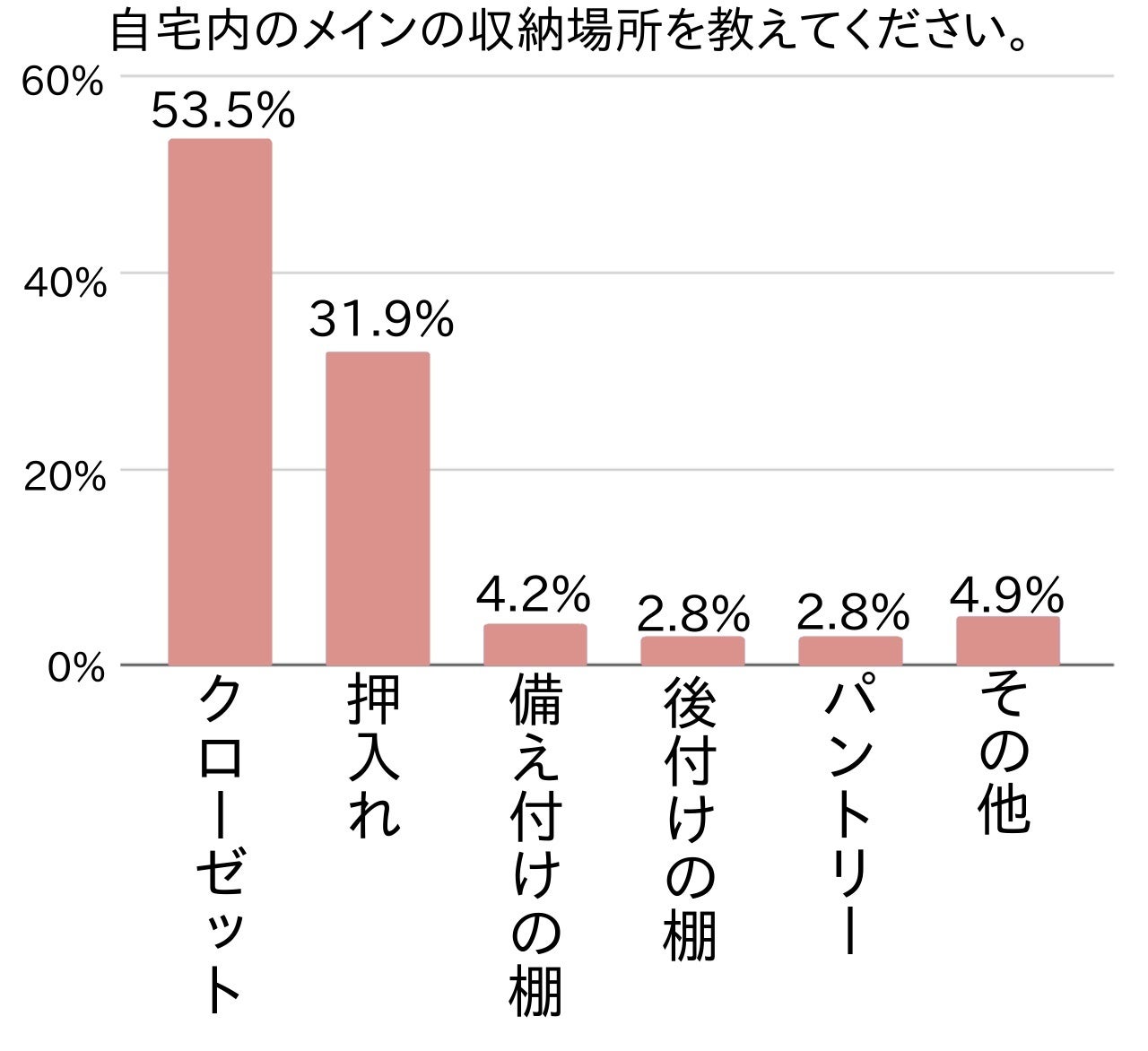 続いて、自宅内のメインとなる収納場所はどこかを尋ねてみました。