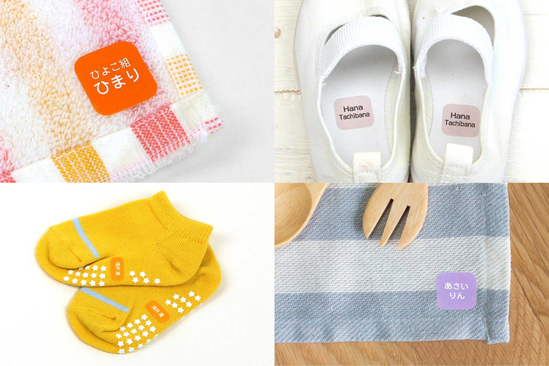 アイロンを使わずペタッと貼るだけなので、保育園・幼稚園の入園準備としてお子さまの衣類やパンツ、靴下・タオル・上靴などに名前つけできます。さらに大人でも使いやすいデザインのため、入院や介護施設入所・デイサービスで必要な持ち物への名前つけなどにもお使いいただけます。