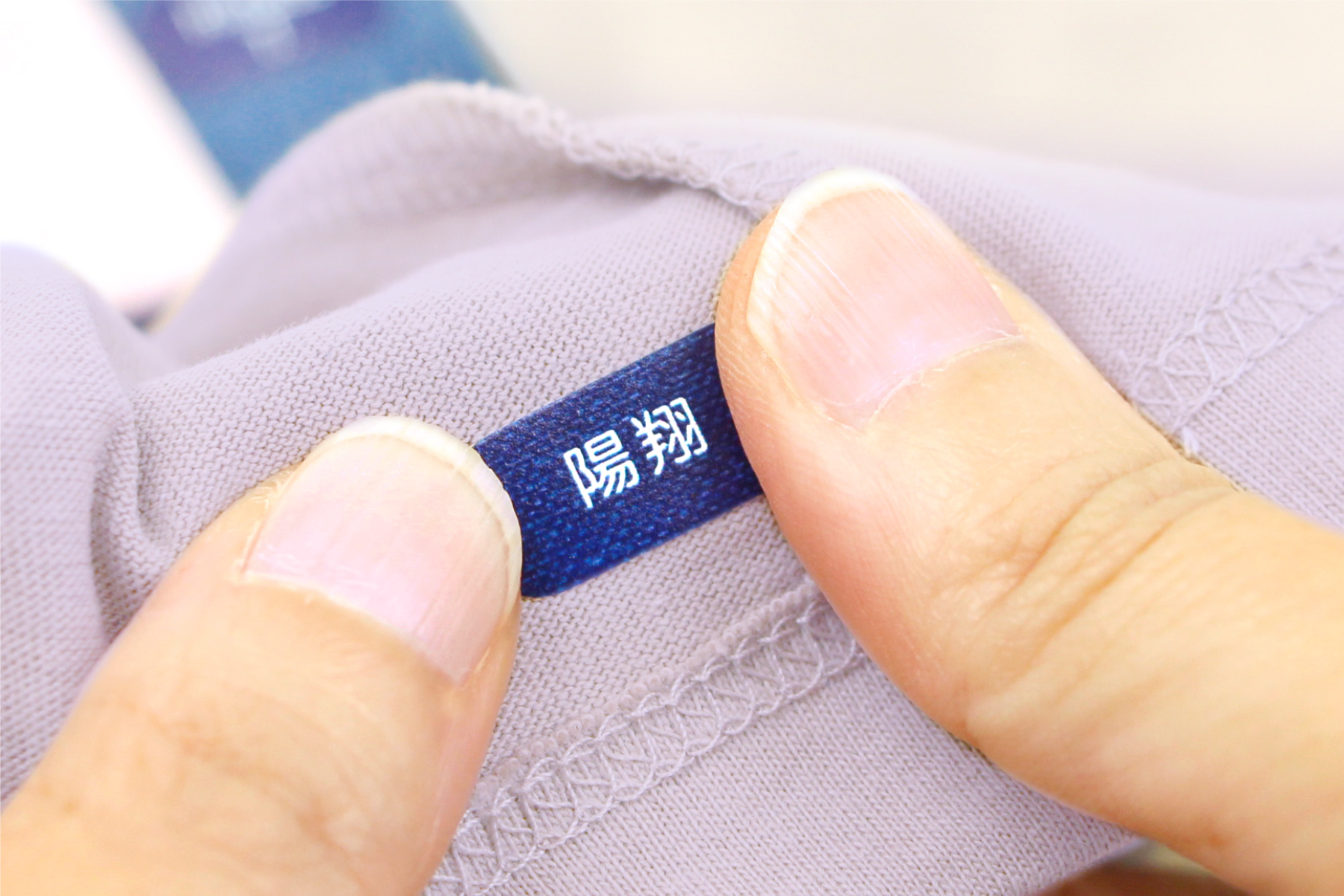 「クラス名は入れられませんか?」というお声から始めた2段組サービス。ひとつひとつ手作業になりますが、今でも無料対応をつづけております。また毎日着る下着に貼っておくことができるので、電話番号を入れておけば認知症の徘徊対策にもお使いいただくことができます。