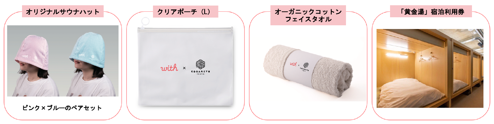■景品:『with』×「黄金湯」オリジナルサウナセット&「黄金湯」宿泊利用券