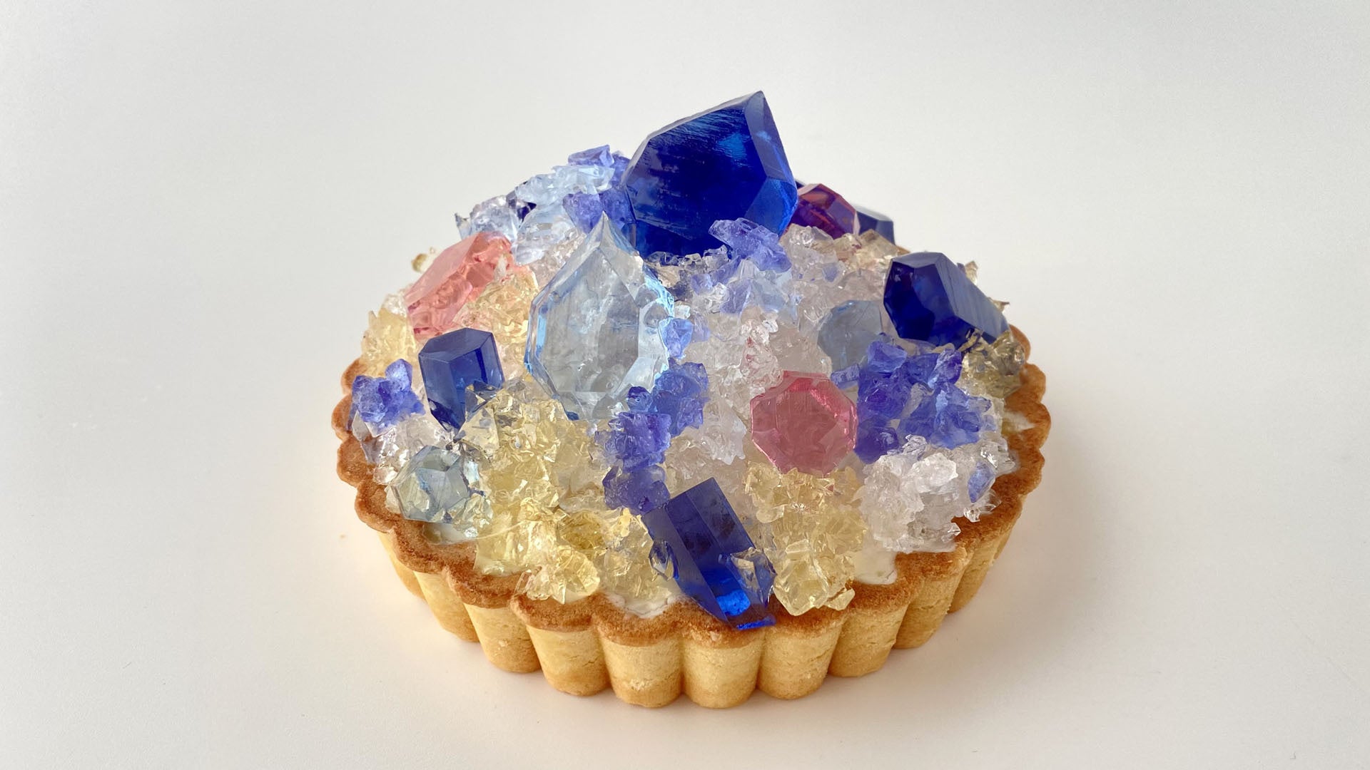神秘的なブルーに輝く9月の誕生石“サファイア”をイメージしたアイスケーキ【誕生石のタルト〜9月サファイア〜】は、8月25日正午より20台限定で販売開始し、即完売となりました。再販希望のお声を多くいただき、今回追加で20台の再販が決定いたしました。ひとつひとつ職人が切り出す琥珀糖の切りたての輝きをお楽しみいただける特別なタルトは、大切な人への贈り物にも、自分へのご褒美にもぴったりな一品です。トップには、9月の誕生石「サファイア」をイメージした深いブルーの色合いのこうぶつヲカシと、同じく9月の誕生石「クンツァイト」をイメージしたこうぶつヲカシが輝きます。