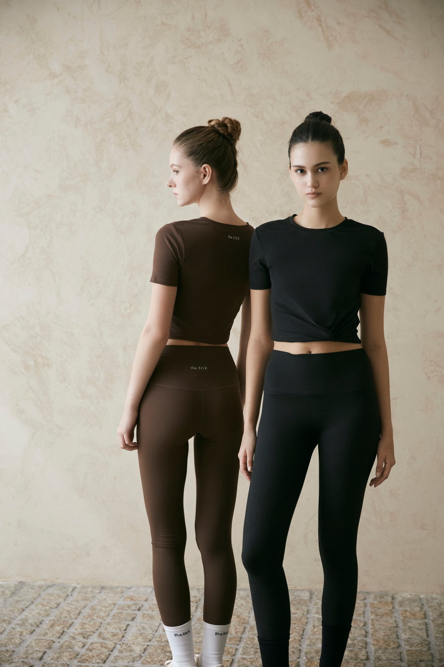 今期のコレクションでは、【ツイスト クロップドトップ・シルキーフィット レギンス・グリップ 5本指クルーソックス】の3アイテムを展開いたします。