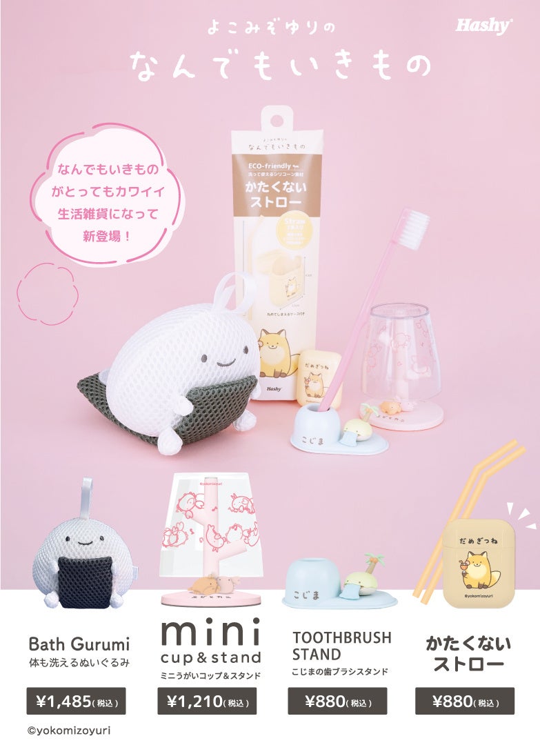 株式会社ハシートップイン(本社所在地:東京都墨田区、代表取締役:橋本貴裕)では、「なんでもいきもの」のバスぐるみ(のりおにぎり)・ミニうがいコップ&スタンド(カニとエビ)・歯ブラシスタンド(こじま)・かたくないストロー(だめぎつね)を発売いたします。