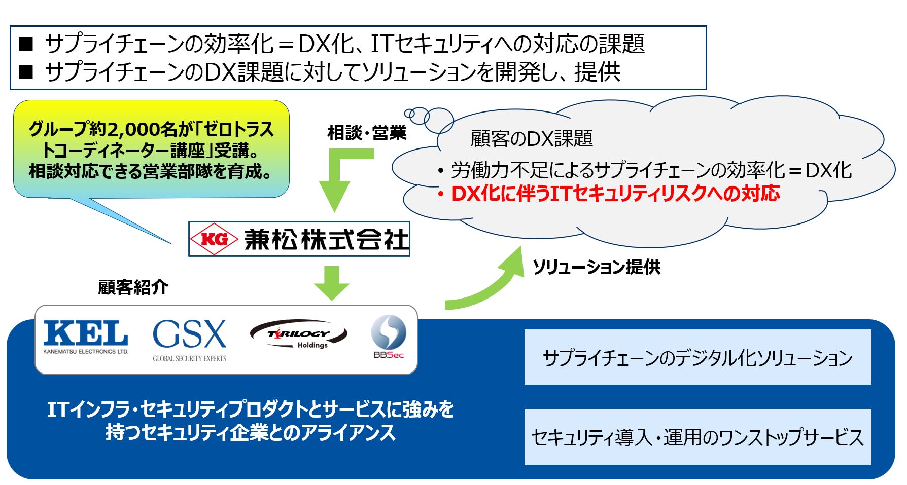 さらに、同月より開始した3カ年の中期経営計画「integration1.0」において、目指す姿を「効率的かつ持続可能なサプライチェーンの変革をリードするソリューションプロバイダー」と掲げています。「効率的」は、取引先のDXに伴うITセキュリティリスクへの支援を通じたサプライチェーンの効率化を表しています。
