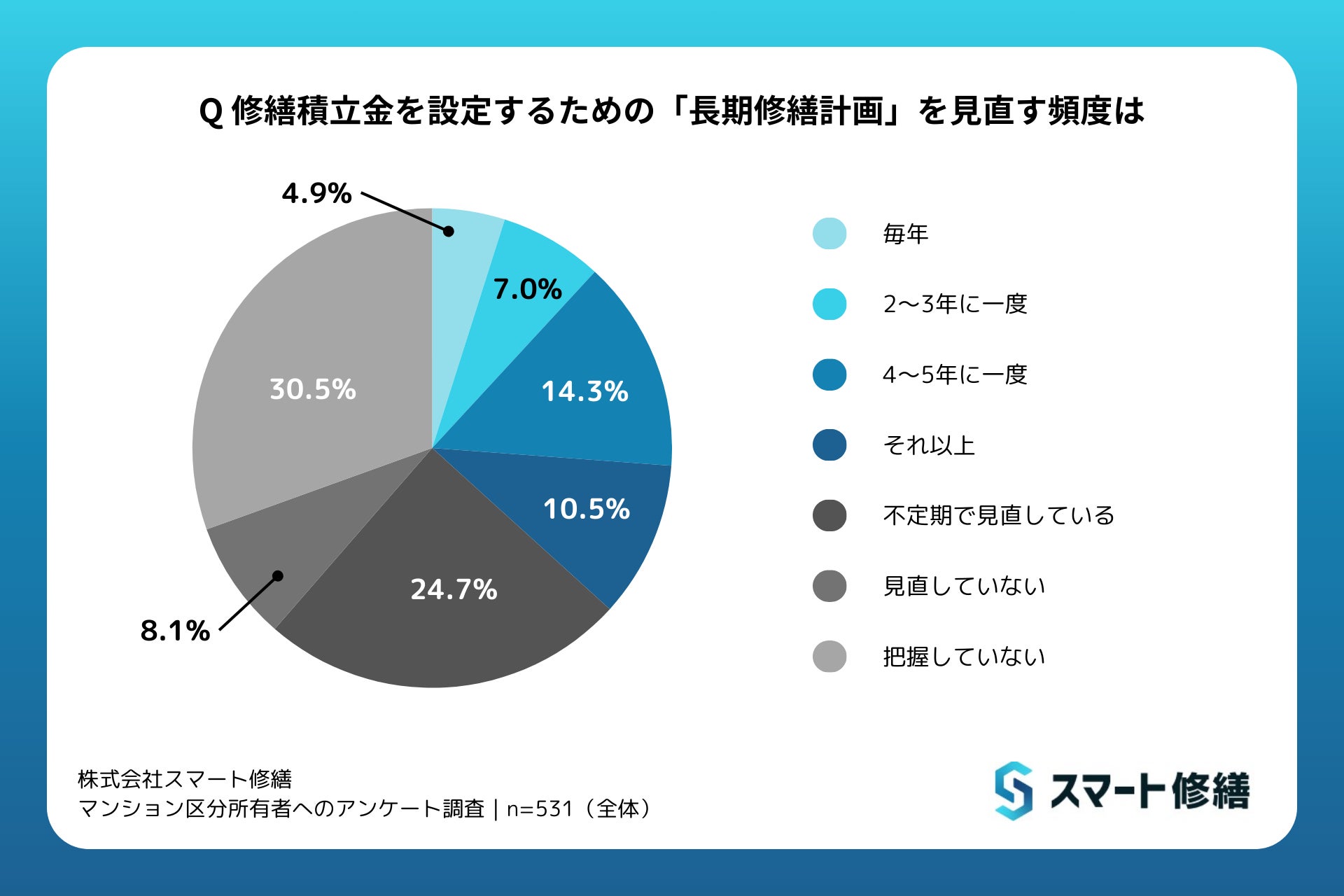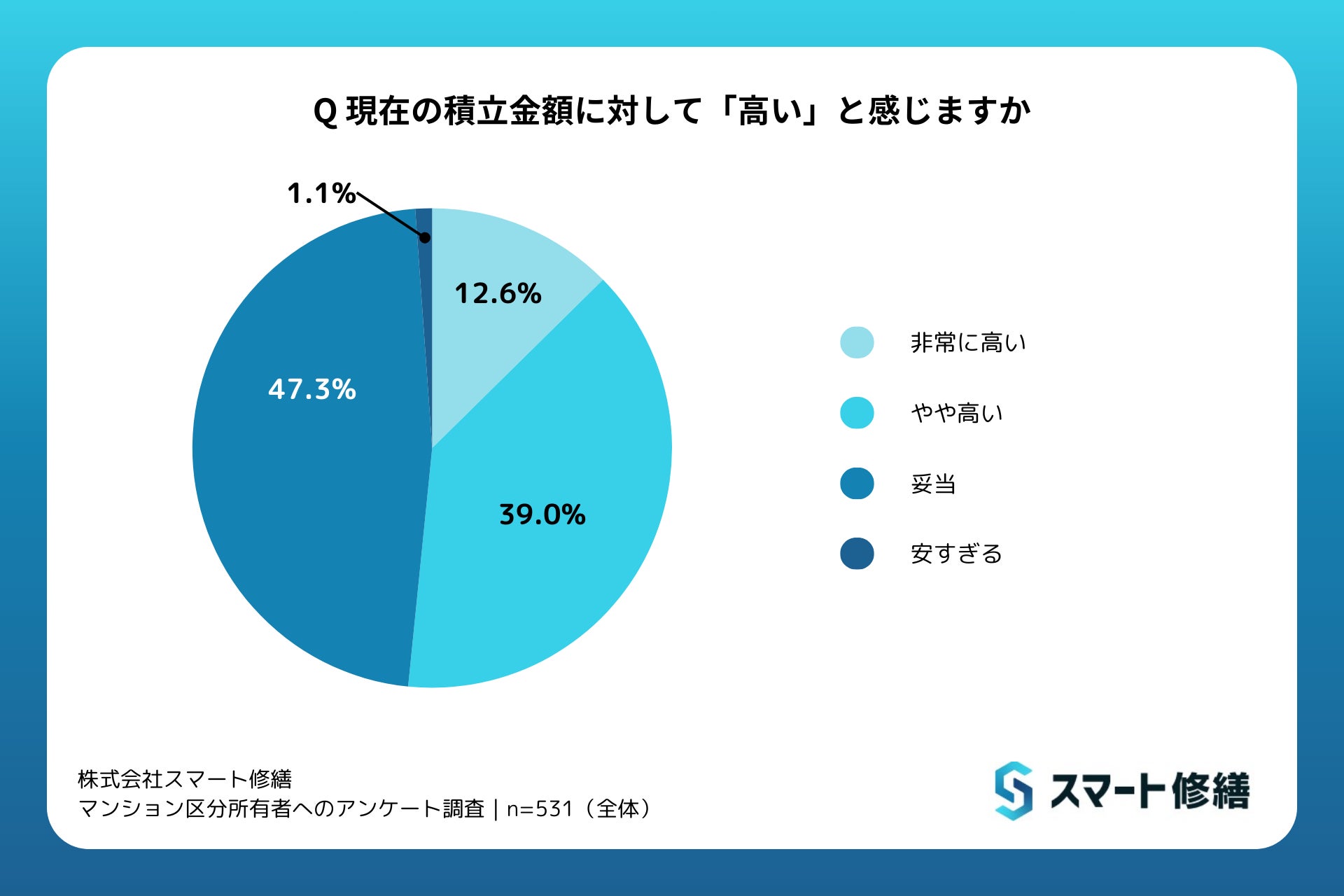 マンションやビルなど大型建物の修繕工事の見積、工事支援サービスを展開する株式会社スマート修繕(本社:東京都港区)は、マンション区分所有者531名を対象に、修繕積立金に関する実態調査を実施しました。