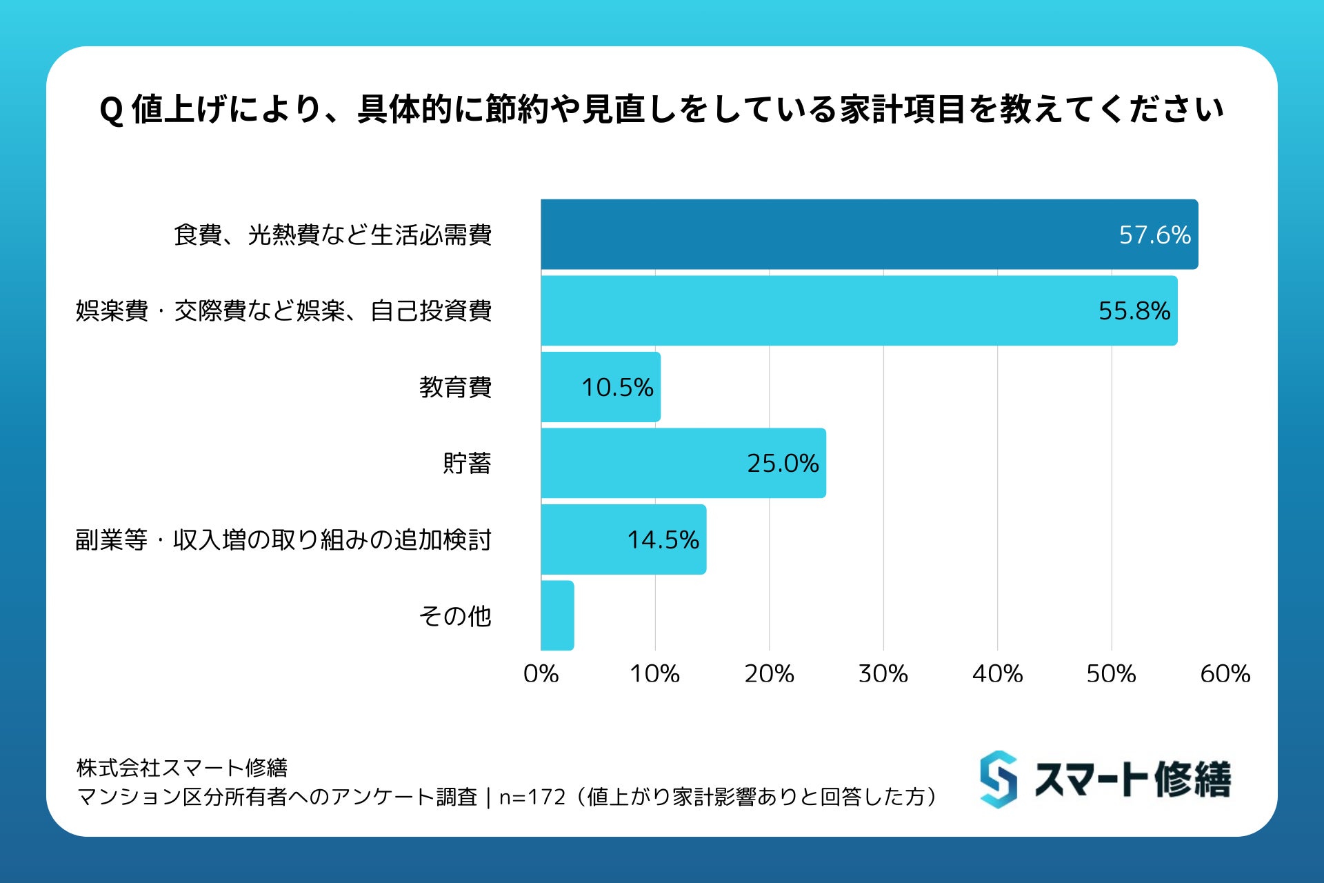 値上がり世帯の68.5% が家計への影響を実感。過半数(57.6%)が食費・光熱費を削って対応。