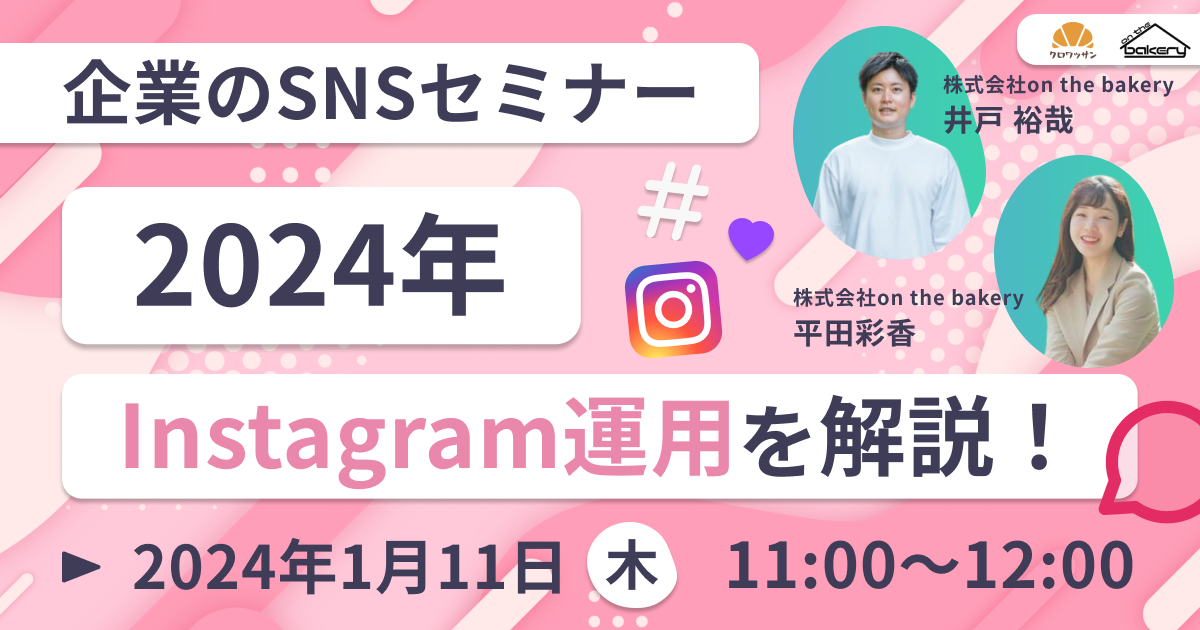 セミナー名:【企業のSNSセミナー】2024年Instagram運用を解説!《2024/1/11 11:00開催@Zoomセミナー》